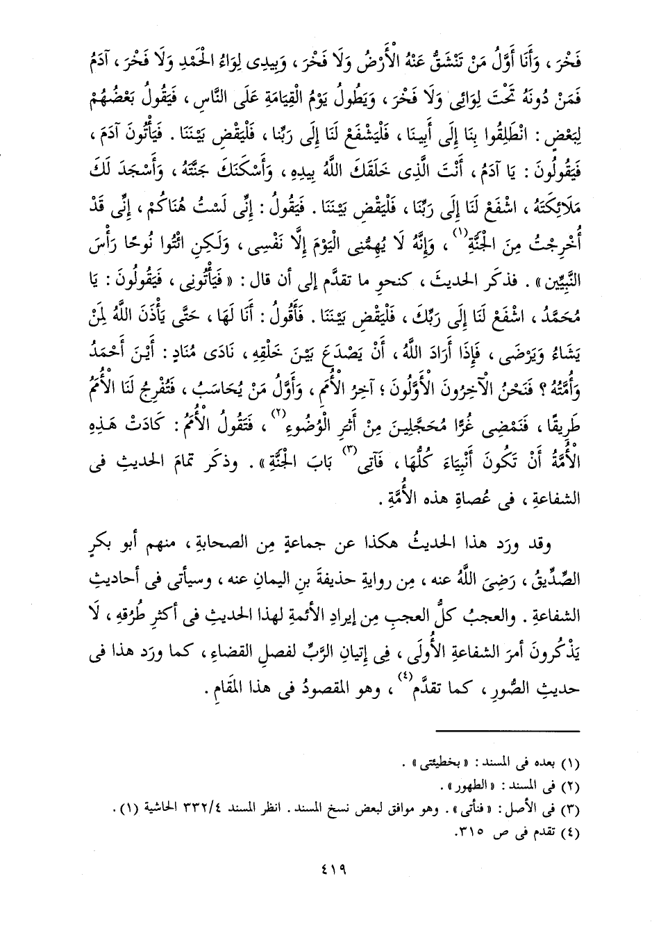 وَقَدْ وَرَدَ هَذَا الْحَدِيثُ هَكَذَا عَنْ جَمَاعَةٍ مِنَ الصَّحَابَةِ، مِنْهُمْ أَبُو بَكْرٍ الصِّدِّيقُ رَضِيَ اللَّهُ عَنْهُ، مِنْ رِوَايَةِ حُذَيْفَةَ بْنِ الْيَمَانِ عَنْهُ، وَسَيَأْتِي فِي أَحَادِيثِ الشَّفَاعَةِ. وَالْعَجَبُ كُلُّ الْعَجَبِ مِنْ إِيرَادِ الْأَئِمَّةِ لِهَذَا الْحَدِيثِ فِي أَكْثَرِ طُرُقِهِ، لَا يَذْكُرُونَ أَمْرَ الشَّفَاعَةِ الْأُولَى، فِي إِتْيَانِ الرَّبِّ لِفَصْلِ الْقَضَاءِ، كَمَا وَرَدَ هَذَا فِي حَدِيثِ الصُّورِ، كَمَا تَقَدَّمَ، وَهُوَ الْمَقْصُودُ فِي هَذَا الْمَقَامِ.