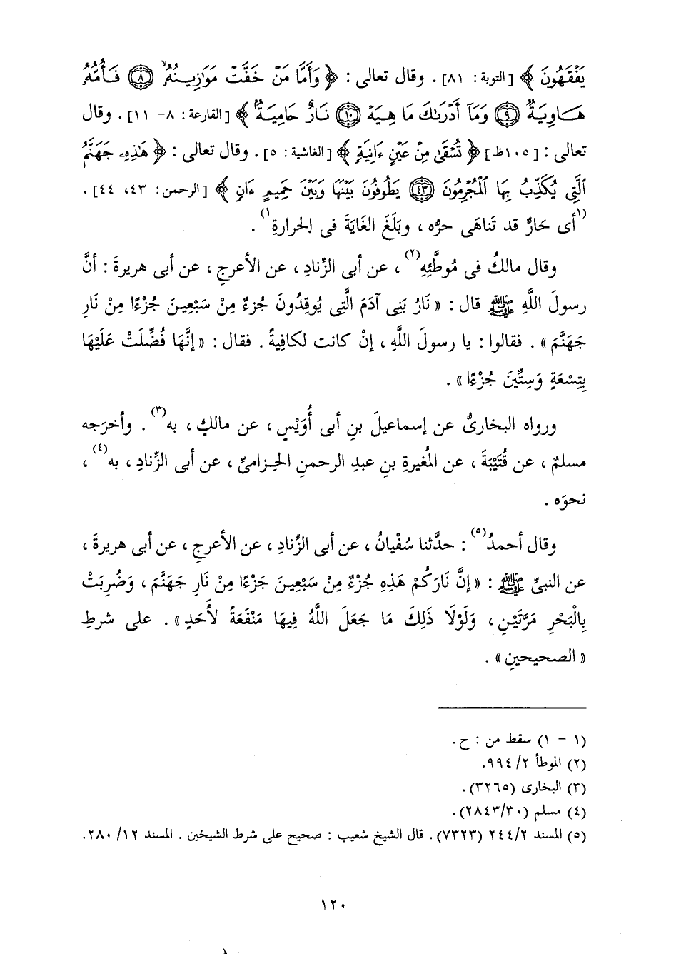 وَقَالَ مَالِكٌ فِي مُوَطَّئِهِ، عَنْ أَبِي الزِّنَادِ، عَنِ الْأَعْرَجِ، عَنْ أَبِي هُرَيْرَةَ: أَنَّ رَسُولَ اللَّهِ صَلَّى اللَّهُ عَلَيْهِ وَسَلَّمَ قَالَ: " «نَارُ بَنِي آدَمَ الَّتِي يُوقِدُونَ جُزْءٌ مِنْ سَبْعِينَ جُزْءًا مِنْ نَارِ جَهَنَّمَ ". فَقَالُوا: يَا رَسُولَ اللَّهِ، إِنْ كَانَتْ لَكَافِيَةً. فَقَالَ: " إِنَّهَا فُضِّلَتْ عَلَيْهَا بِتِسْعَةٍ وَسِتِّينَ جُزْءًا» ".