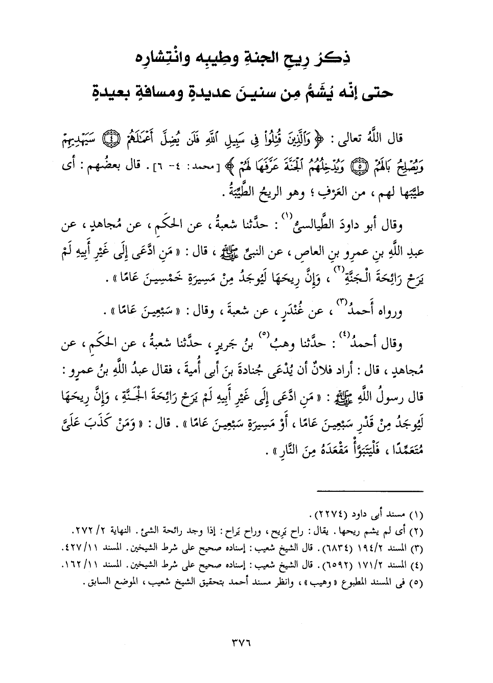 [ذِكْرُ رِيحِ الْجَنَّةِ وَطِيبِهِ وَانْتِشَارِهِ حَتَّى إِنَّهُ يُشَمُّ مِنْ سِنِينَ عَدِيدَةٍ وَمَسَافَةٍ بَعِيدَةٍ]
