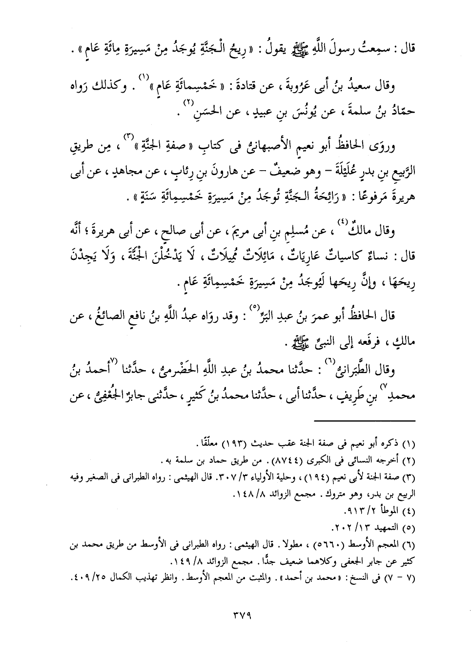 قَالَ: سَمِعْتُ رَسُولَ اللَّهِ صَلَّى اللَّهُ عَلَيْهِ وَسَلَّمَ يَقُولُ: " «رِيحُ الْجَنَّةِ يُوجَدُ مِنْ مَسِيرَةِ مِائَةِ عَامٍ» ".