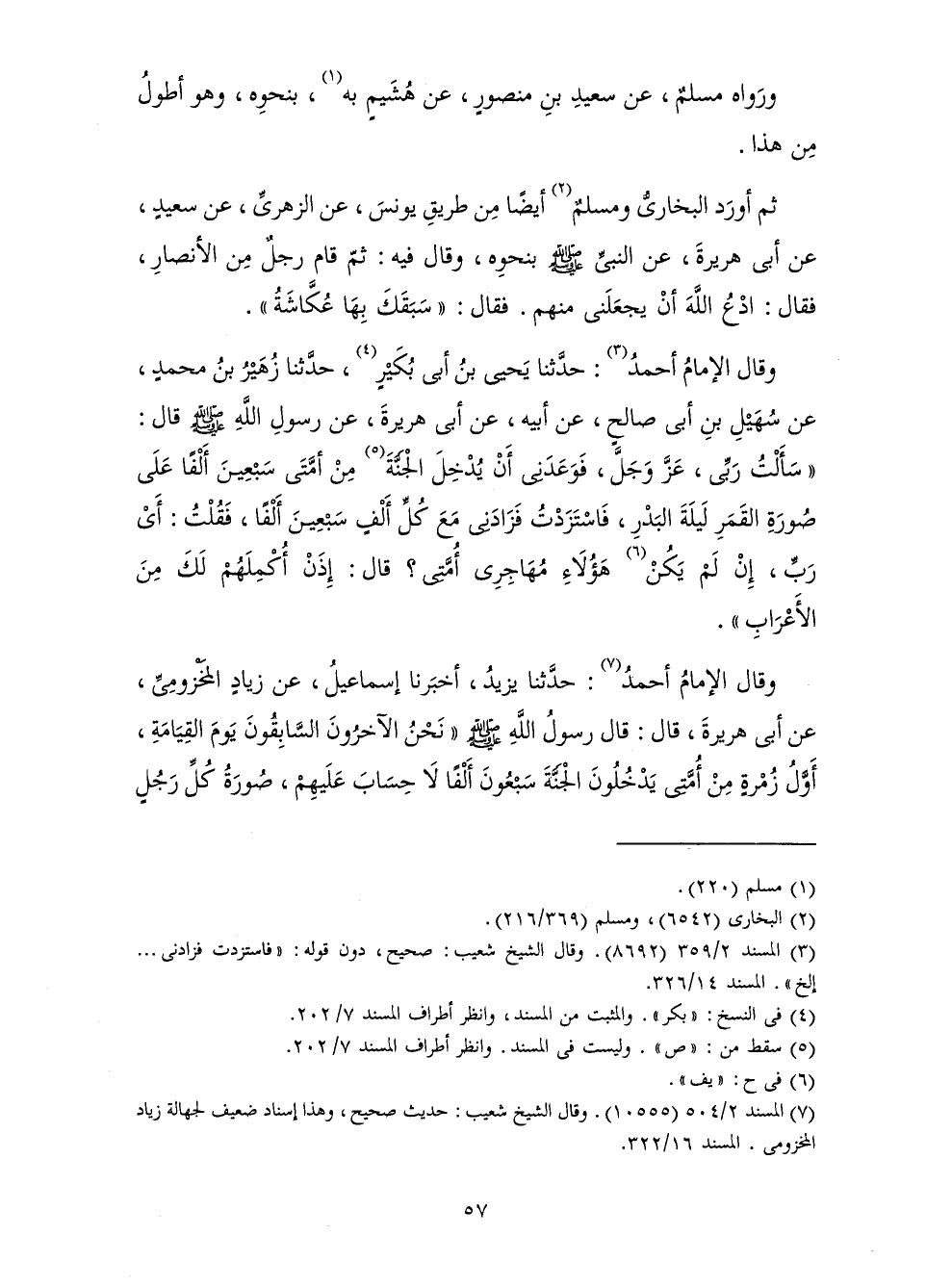 ثُمَّ أَوْرَدَ الْبُخَارِيُّ وَمُسْلِمٌ أَيْضًا مِنْ طَرِيقِ يُونُسَ، عَنِ الزُّهْرِيِّ، عَنْ سَعِيدٍ، عَنْ أَبِي هُرَيْرَةَ، عَنِ النَّبِيِّ صَلَّى اللَّهُ عَلَيْهِ وَسَلَّمَ بِنَحْوِهِ، وَقَالَ فِيهِ: ثُمَّ قَامَ رَجُلٌ مَنَ الْأَنْصَارِ، فَقَالَ: ادْعُ اللَّهَ أَنْ يَجْعَلَنِي مِنْهُمْ. فَقَالَ: " سَبَقَكَ بِهَا عُكَّاشَةُ ".