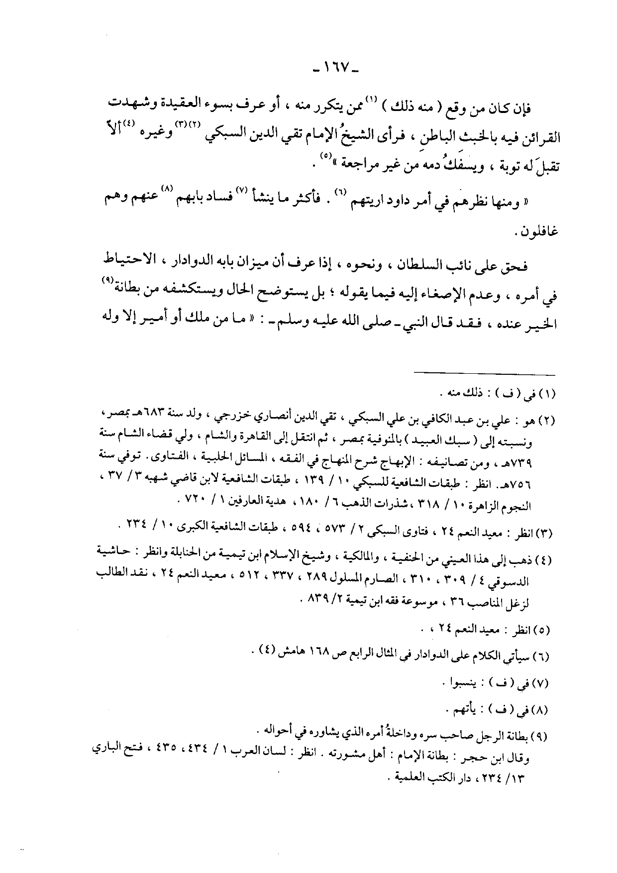فإن كان من وقع (منه ذلك) ممن يتكرر منه، أو عرف بسوء العقيدة وشهدت القرائن فيه بالخبث الباطن، فرأى الشيخ الإمام تقي الدين السبكي وغيره ألا تقبل له توبة، ويسفك دمه من غير مراجعة".