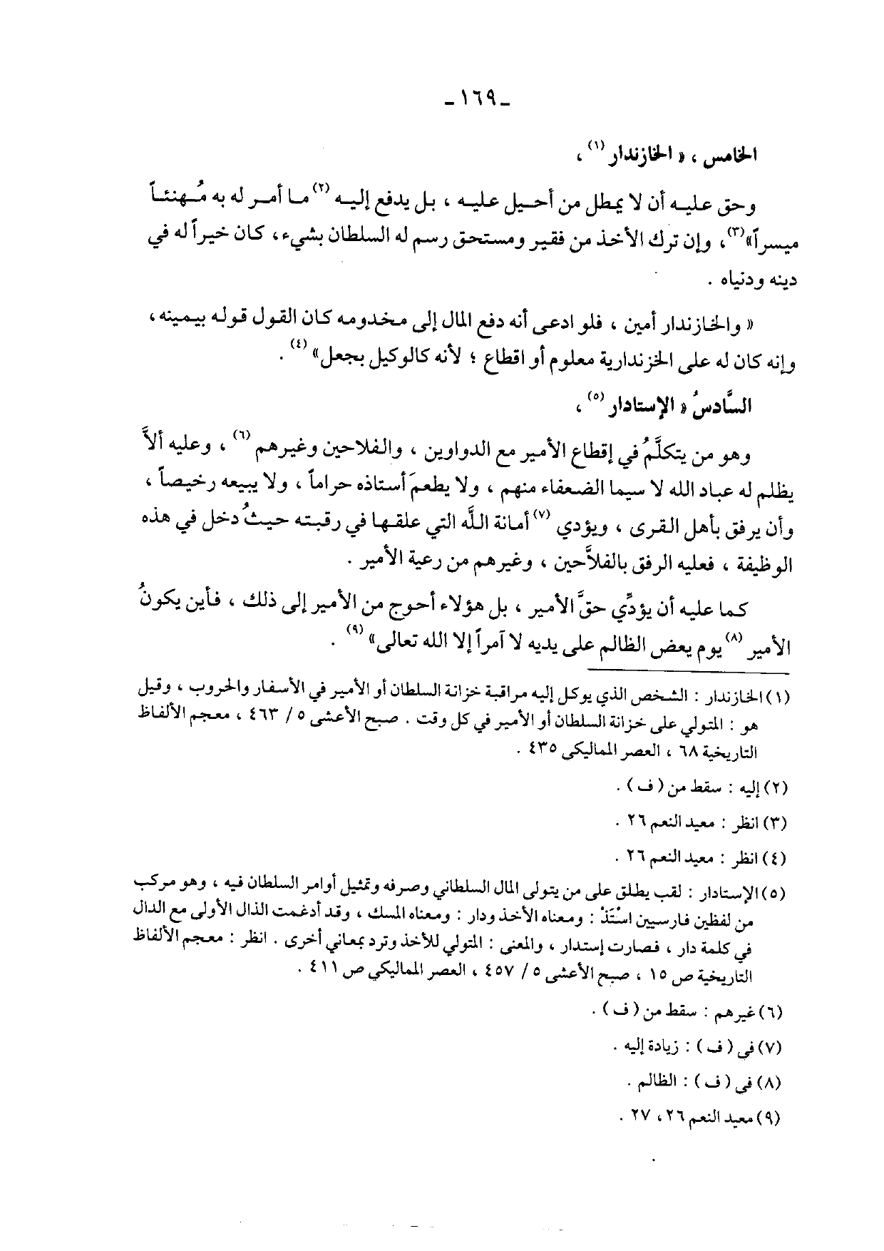 وهو من يتكلم في إقطاع الأمير مع الدواوين، والفلاحين وغيرهم، وعليه ألا يظلم له عباد الله لا سيما الضعفاء منهم، ولا يطعم أستاذه حراماً، ولا يبيعه رخيصاً، وأن يرفق بأهل القرى، ويؤدي أمانة الله التي علقها في رقبته حيث دخل في هذه الوظيفة، فعليه الرفق بالفلاحين، وغيرهم من رعية الأمير.