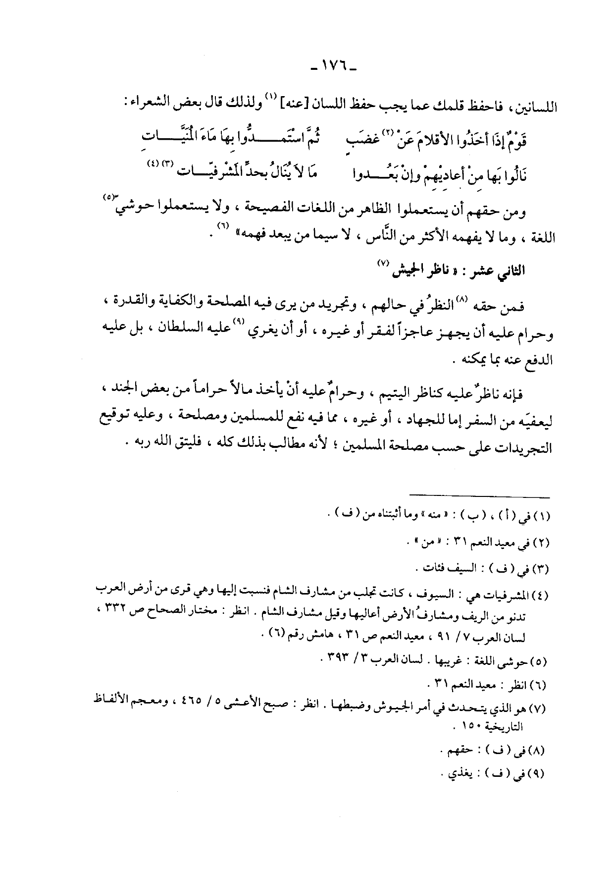 ومن حقهم أن يستعملوا الظاهر من اللغات الفصيحة، ولا يستعملوا حوشي اللغة، وما لا يفهمه الأكثر من الناس، لا سيما من يبعد فهمه".
