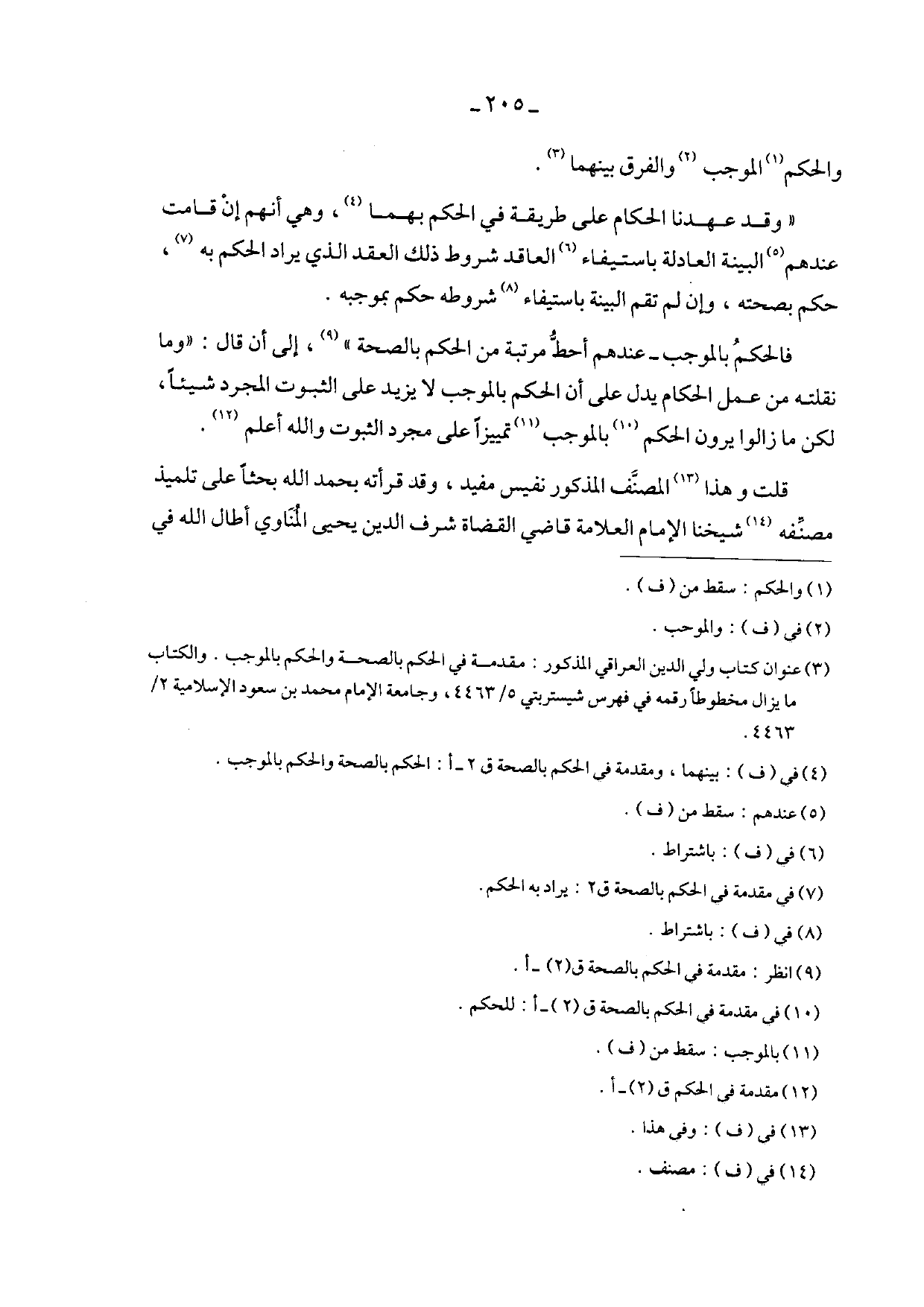 فالحكم بالموجب – عندهم أحط مرتبة من الحكم بالصحة"، إلى أن قال: "وما نقلته من عمل الحكام يدل على أن الحكم بالموجب لا يزيد على الثبوت بالمجرد شيئاً، لكن ما زالوا يرون الحكم بالموجب تمييزاً على مجرد الثبوت والله أعلم.
