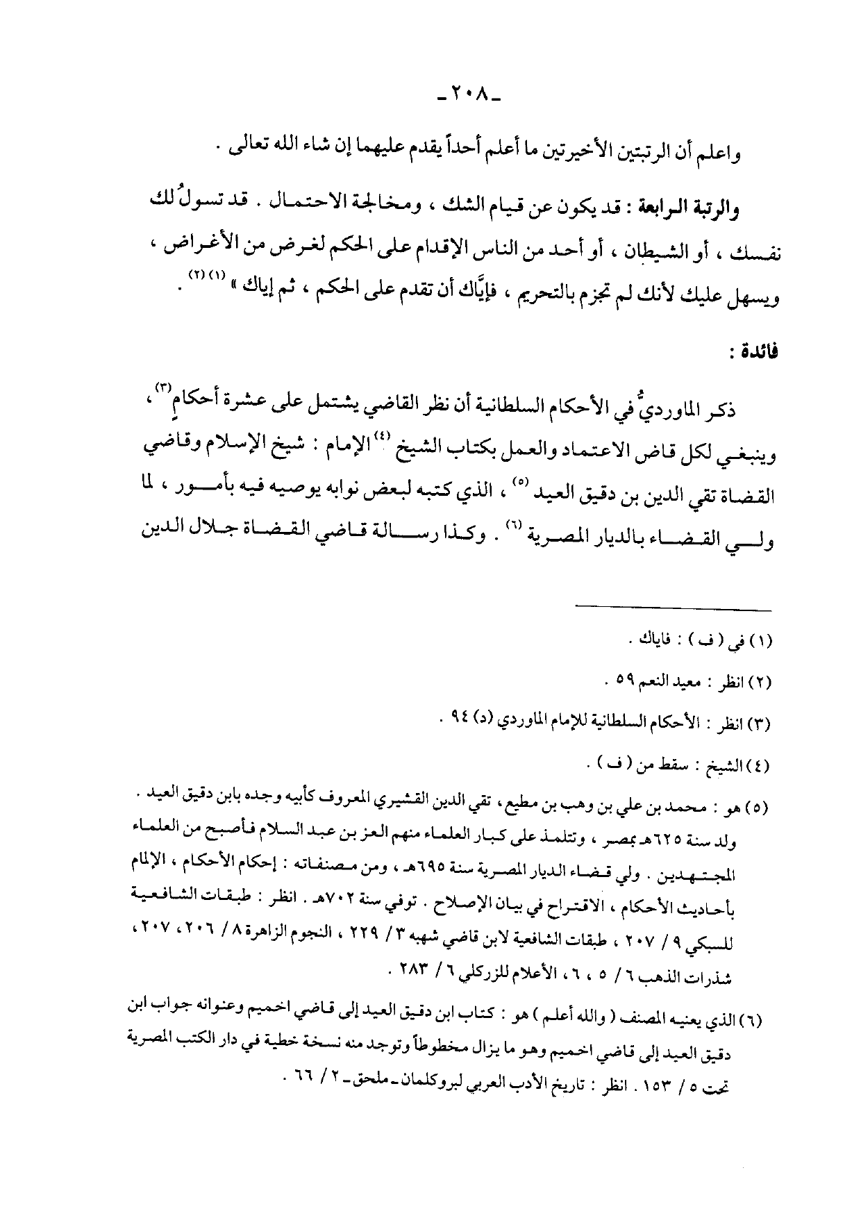 والرتبة الرابعة: قد يكون عن قيام الشك، ومخالجة الاحتمال. قد تسول لك نفسك، أو الشيطان، أو أحد من الناس الإقدام على الحكم لغرض من الأغراض، ويسهل عليك لأنك لم تجزم بالتحريم، فإياك أن تقدم على الحكم، ثم إياك".