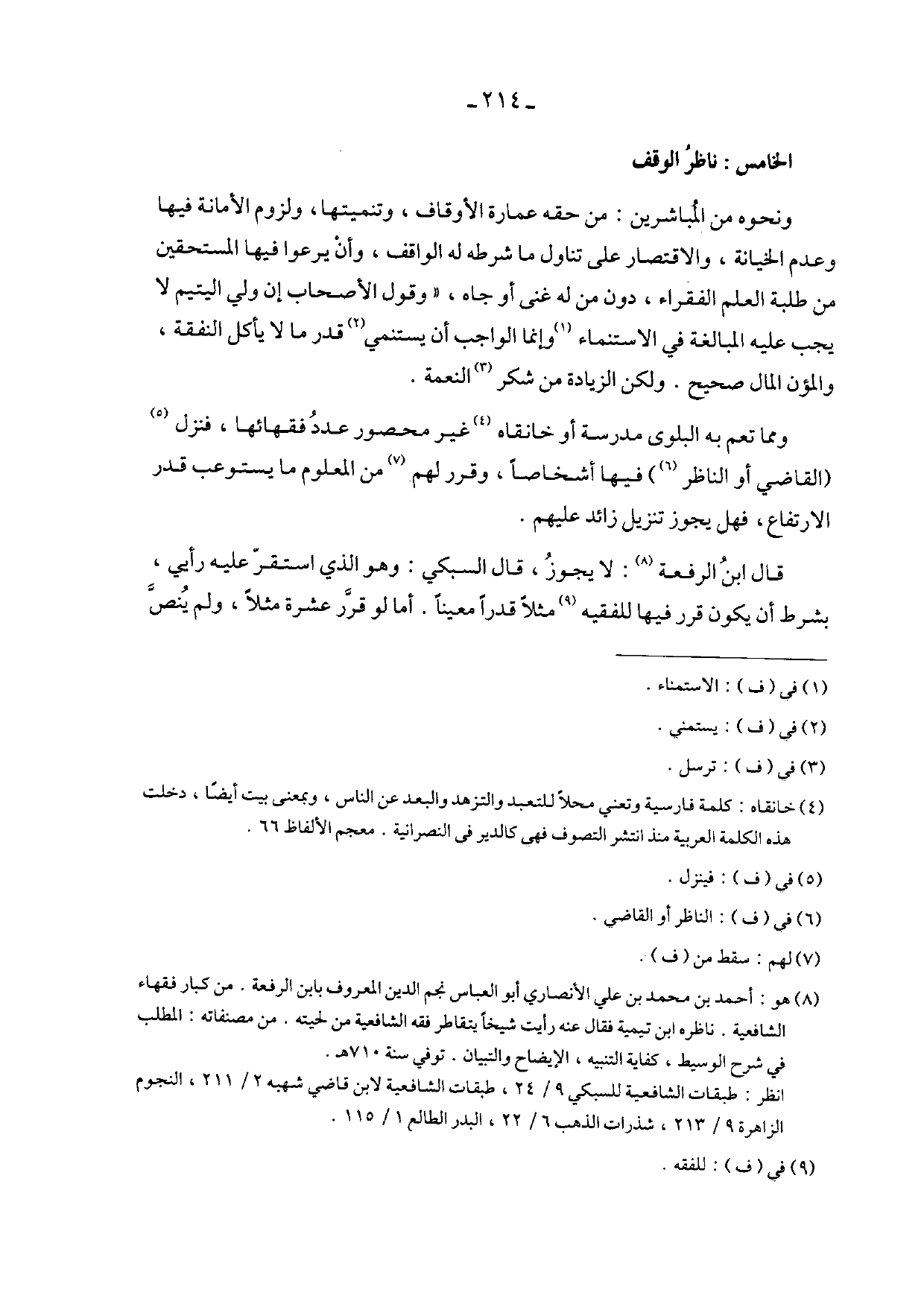 ومما تعم البلوى مدرسة أو خانقاه غير محصور عدد فقهائها، فنزل (القاضي أو الناظر) فيها اشخاصاً، وقرر لهم من المعلوم ما يستوعب قدر الارتفاع، فهل يجوز تنزيل زائد عليهم.