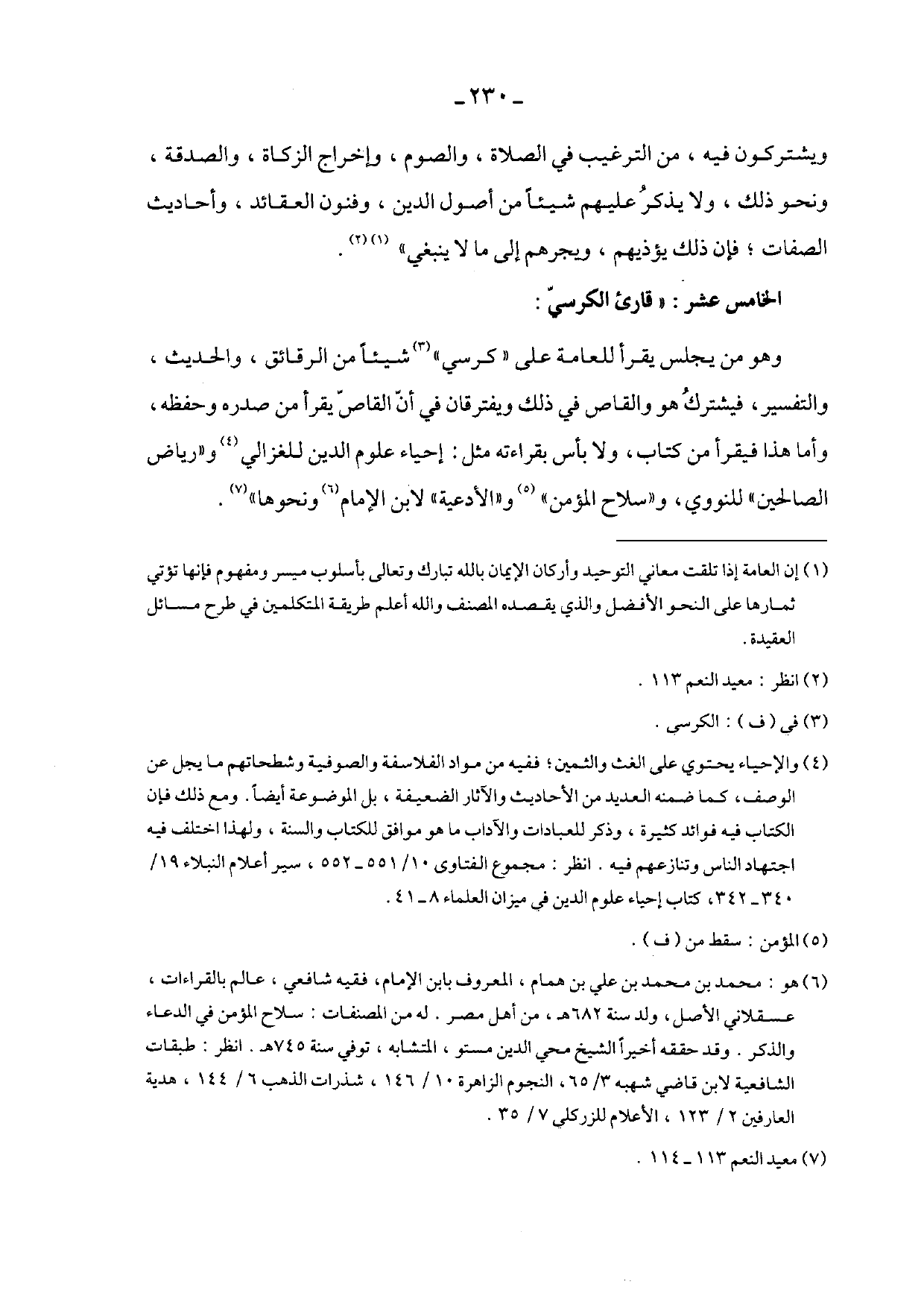 وهو من يجلس يقرأ للعامة على "كرسي" شيئاً من الرقائق، والحديث، والتفسير، فيشترك هو والقاص في ذلك ويفترقان في أن القاص يقرأ من صدره وحفظه، وأما هذا فيقرأ من كتاب، ولا بأس بقراءته مثل: إحياء علوم الدين للغزالي و "رياض الصالحين" للنووي، و "سلاح المؤمن" و "الأدعية" لابن الإمام ونحوها".