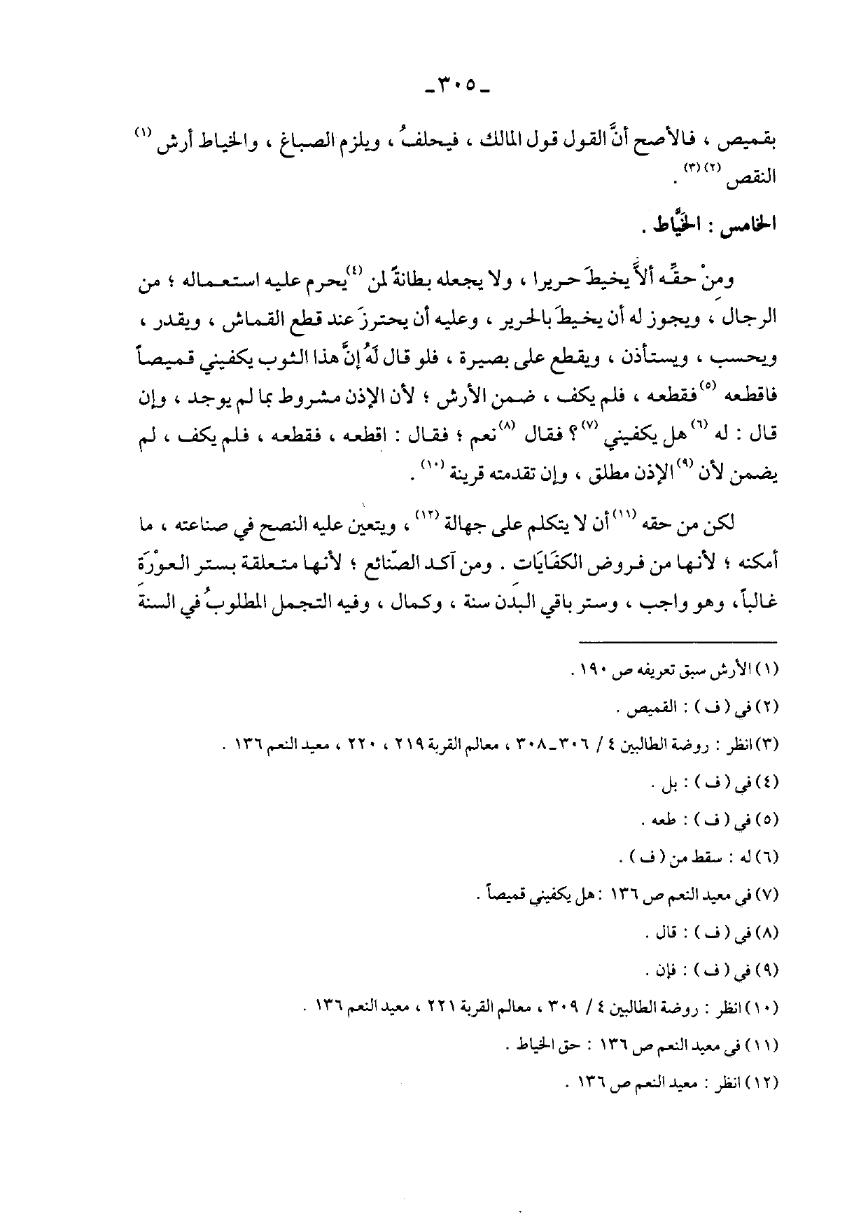لكن من حقه أن لا يتكلم على جهالة، ويتعين عليه النصح في صناعته، ما أمكنه؛ لأنها من فروض الكفايات. ومن أكد الصنائع؛ لأنها متعلقة بستر العورة غالبًا، وهو واجب، وستر باقي البدن سنة، وكمال، وفيه التجمل المطلوب في السنة