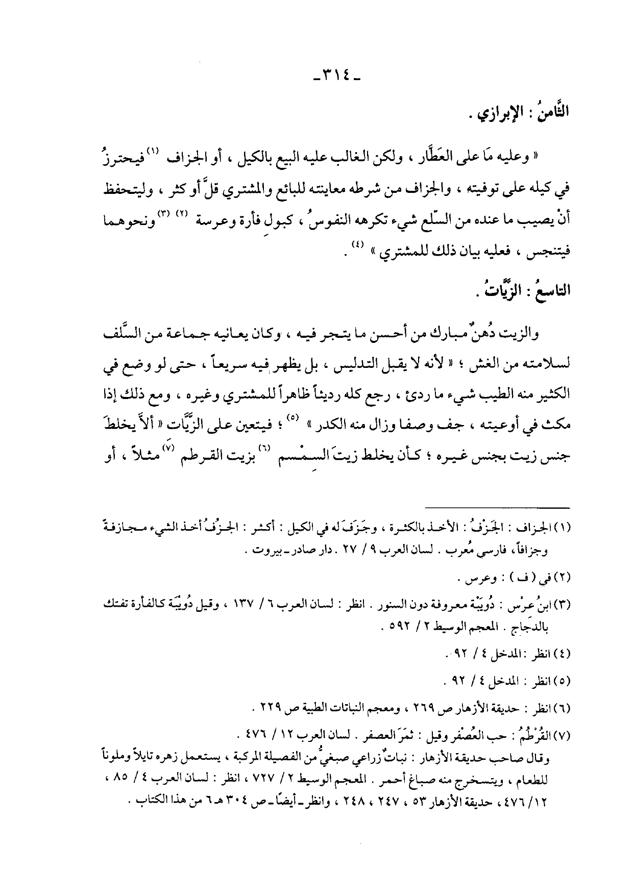 والزيت دهن مبارك من أحسن ما تتجر فيه، وكان يعانيه جماعة من السلف لسلامته من الغش؛ "لأنه لا يقبل التدليس، بل يظهر فيه سريعًا، حتى لو وضع في الكثير منه الطيب شيء ما رديء، ورجع رديئًا ظاهرًا للمشتري وغيره، ومع ذلك إذا مكث في أوعيته، جف وصفًا وزال منه الكدر"؛ فيتعين على الزيات "ألا يخلط جنس زيت بجنس غيره؛ كأن يخلط زيت السمسم بزيت القرطم مثلاً، أو