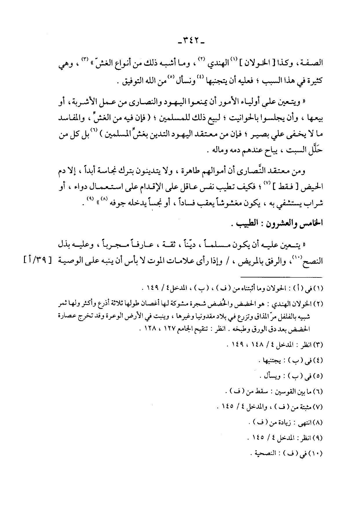 "يتعين عليه أن يكون مسلمًا، دينًا، ثقة، عارفًا مجربًا، وعليه بذل النصح، والرفق بالمريض، / وإذا علامات الموت لا بأس أن ينبه على الوصية [39/أ]