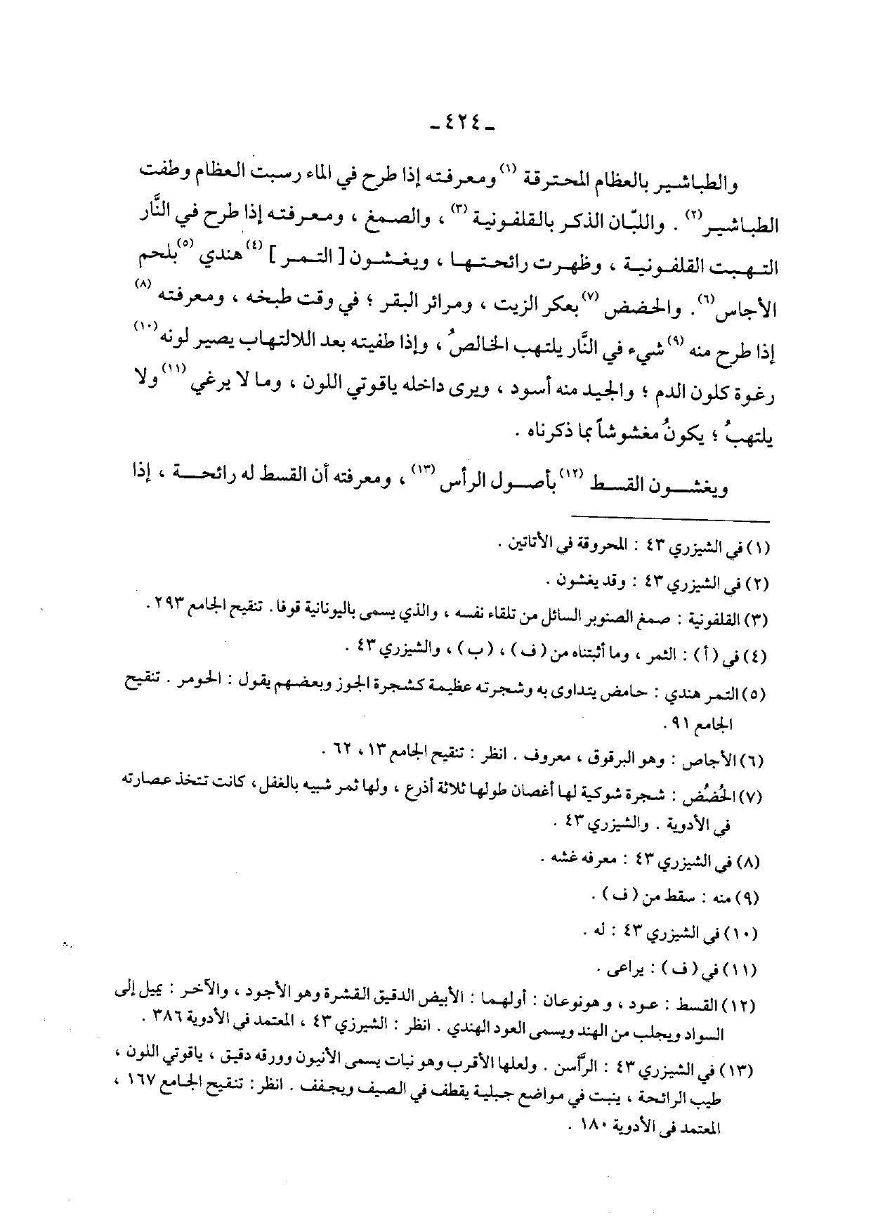 والطباشير بالعظام المحترقة ومعرفته إذا طرح في الماء رسبت العظام وطفت الطباشير. واللبان الذكر بالقلفونية، والصمغ، ومعرفته إذا طرح في النار التهبت القلفونية، وظهرت رائحتها، ويغشون [التمر] هندي بلحم الأجاس. والحضض بعكر الزيت، ومرائر البقر؛ في وقت طبخه، ومعرفته إذا طرح منه شيء في النار يلتهب الخالص، وإذا طفيته بعد اللالتهاب يصير لونه رغوة كلون الدم؛ والجيد منه أسود، ويرى داخله ياقوتي اللون، وما لا يرغي ولا يلتهب؛ يكون مغشوشاً بما ذكرناه.