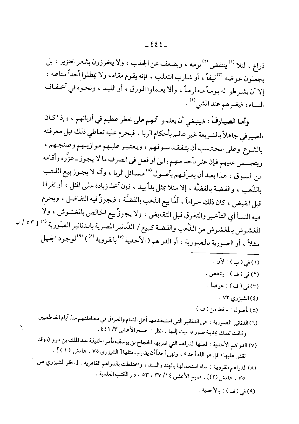 فمنهم من يصبغ الفضة صبغاً لا يفارق الجسد إلا بعد السبك الطويل في الرواباص ثم يمزجون بها الذهب للواحد اثنين. فمن ذلك صفة تصغيره، ذكرها صاحب كتاب "نهاية الرتبة" في طلب الحسبة وهو الشيخ الإمام عبد الرحمن ابن نصر الشيرازي الشافعي فقال: يؤخذ [ساذبخ] قد شويت ودهنت على الانفراد، وراسخت قد شوى بماء المرنج المدبر سبع