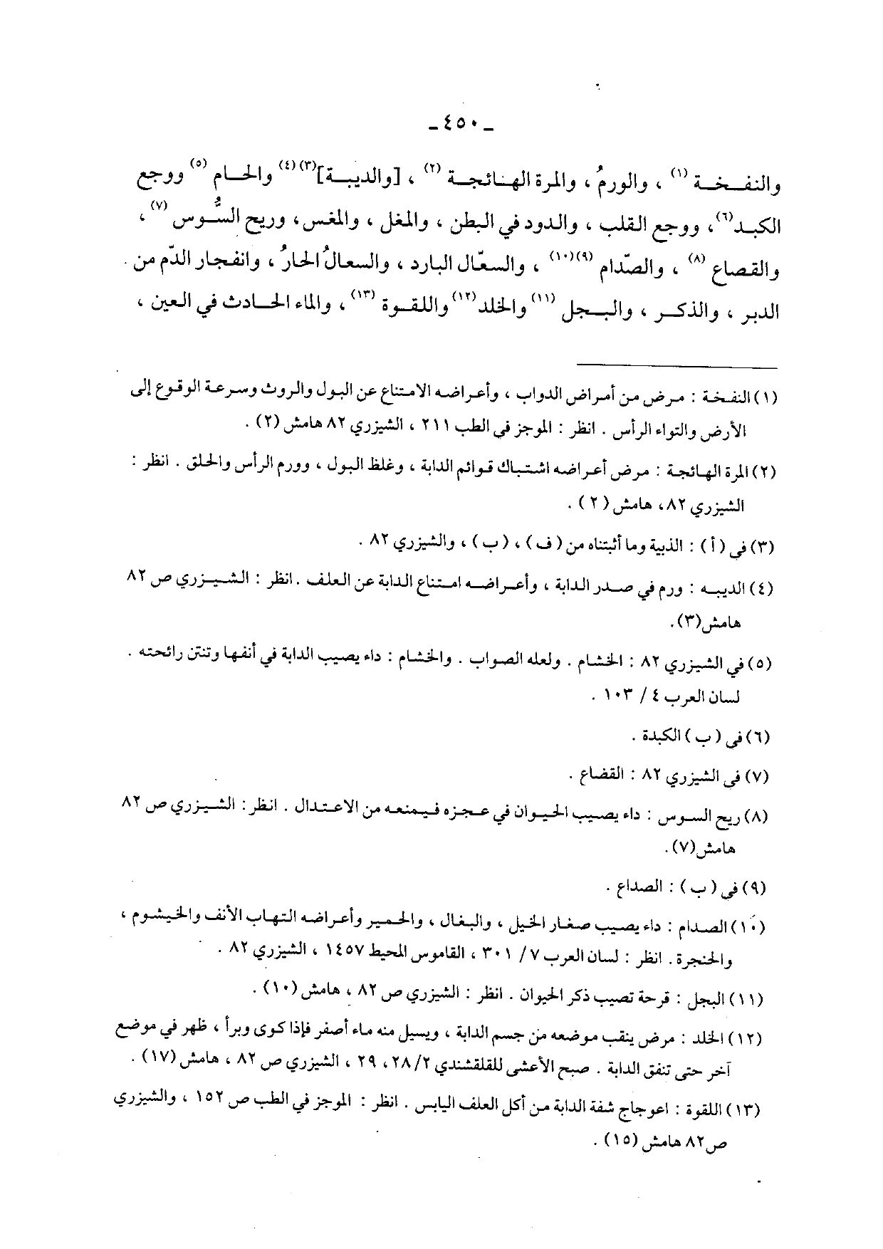 والنفخة، والورم، والمرة الهائجة، [والدببة] والحام ووجع الكبد، ووجع القلب، والدول في البطن، والمغل، والمغس، وريح السوس، والقصاع، والصدام، والسعال البارد، والسعال الحار، وانفجار الدم من الدبر، والذكر، والبجل والخلد واللقوة، والماء الحادث في العين،