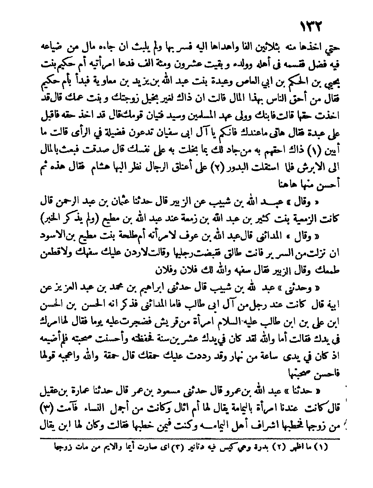 وقال عبد الله بن شبيب عم الزبير قال حدثنا عثمان بن عبد الرحمن قال كانت الزمعية بنت كثير بن عبد الله بن زمعة عن عبد الله بن مطيع ولم يذكر الخبر وقال المدائني قال عبد الله بن عوف لامرأته أم طلحة بنت مطيع بن الأسود ان نزلت من السرير فأنت طالق فقبضت رجليها وقالت لأردن عليك سفهك ولأقطعن طمعك وقال الزبير فقال سفهه والله لك فلان وفلان.