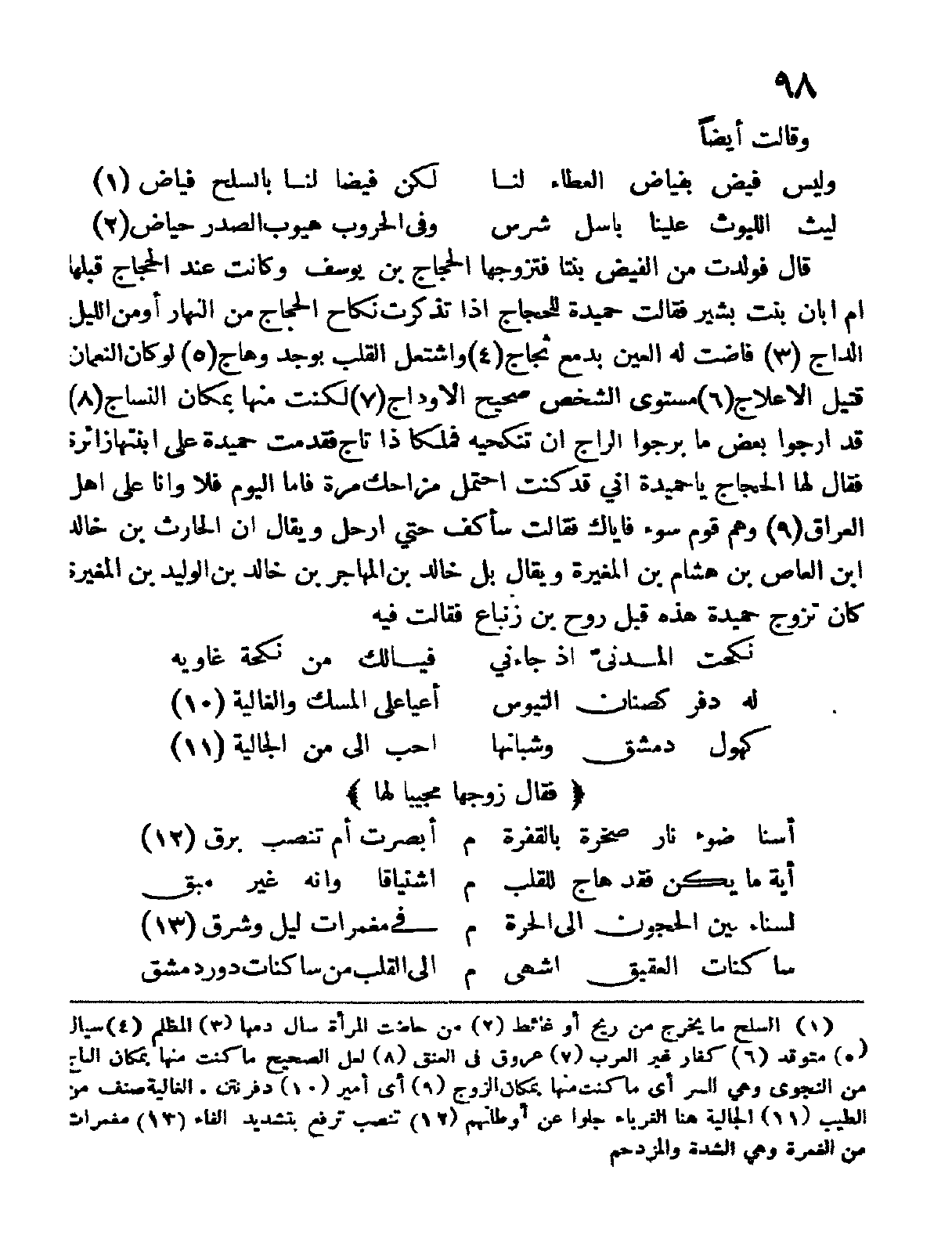 قال فولدت من الفيض بنتاً فتزوجها الحجاج بن يوسف وكانت عند الحجاج قبلها أم أبان بنت بشير فقالت حميدة للحجاج: