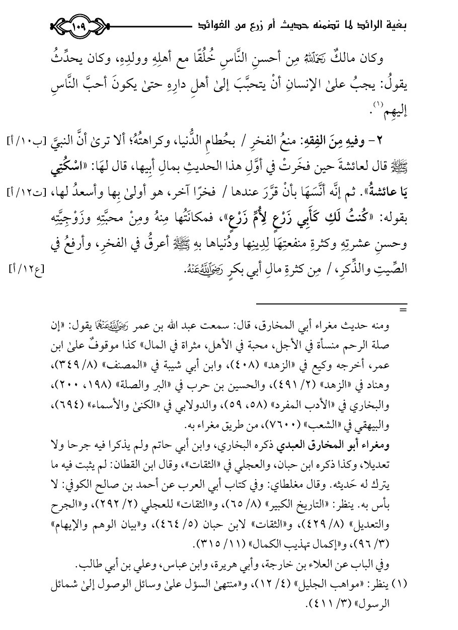 كتاب بغية الرائد لما تضمنه حديث أم زرع من الفوائد ت الدسوقي
