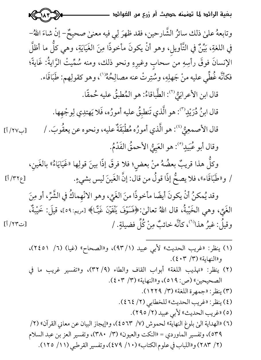 (¬١) ينظر: «غريب الحديث» لأبي عبيد (١/ ٩٣)، و «الصحاح» (غيا) (٦/ ٢٤٥١)، و «النهاية» (٣/ ٤٠٣).