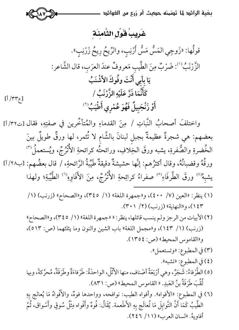 كتاب بغية الرائد لما تضمنه حديث أم زرع من الفوائد ت الدسوقي