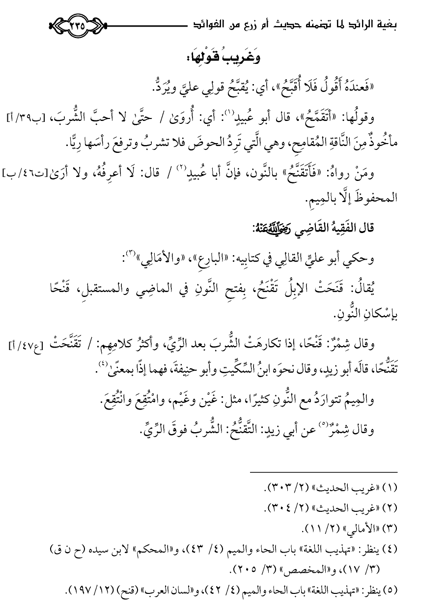 (¬٥) ينظر: «تهذيب اللغة» باب الحاء والميم (٤/ ٤٢)، و «لسان العرب» (قنح) (١٢/ ١٩٧).