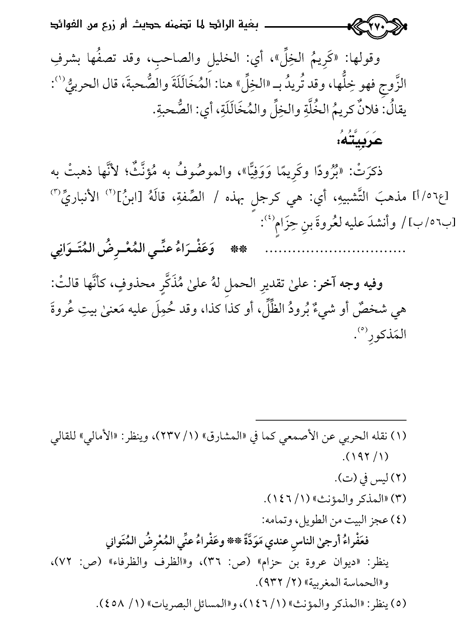كتاب بغية الرائد لما تضمنه حديث أم زرع من الفوائد ت الدسوقي