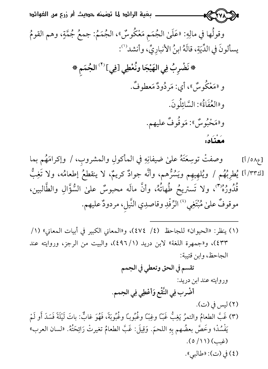 كتاب بغية الرائد لما تضمنه حديث أم زرع من الفوائد ت الدسوقي