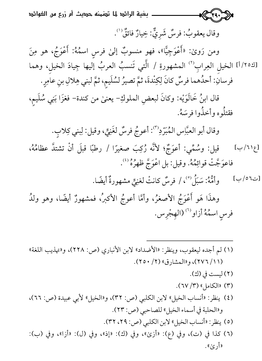 (¬٥) ينظر: «أنساب الخيل» لابن الكلبي (ص: ٢٩، ٣٢).