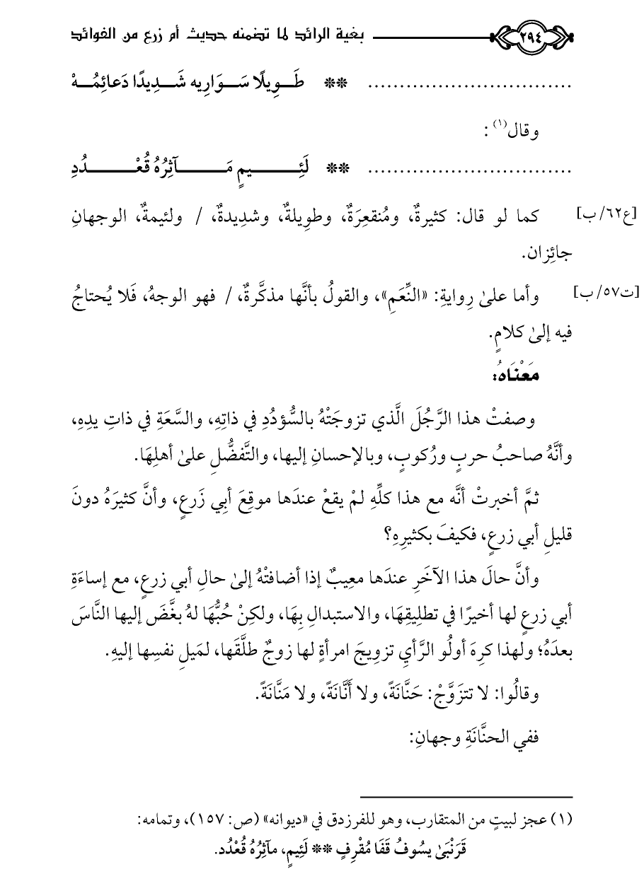 كتاب بغية الرائد لما تضمنه حديث أم زرع من الفوائد ت الدسوقي
