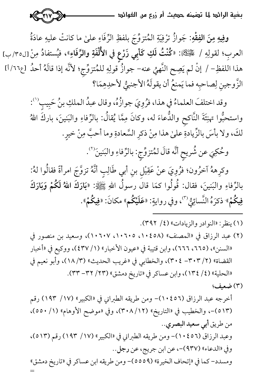 كتاب بغية الرائد لما تضمنه حديث أم زرع من الفوائد ت الدسوقي