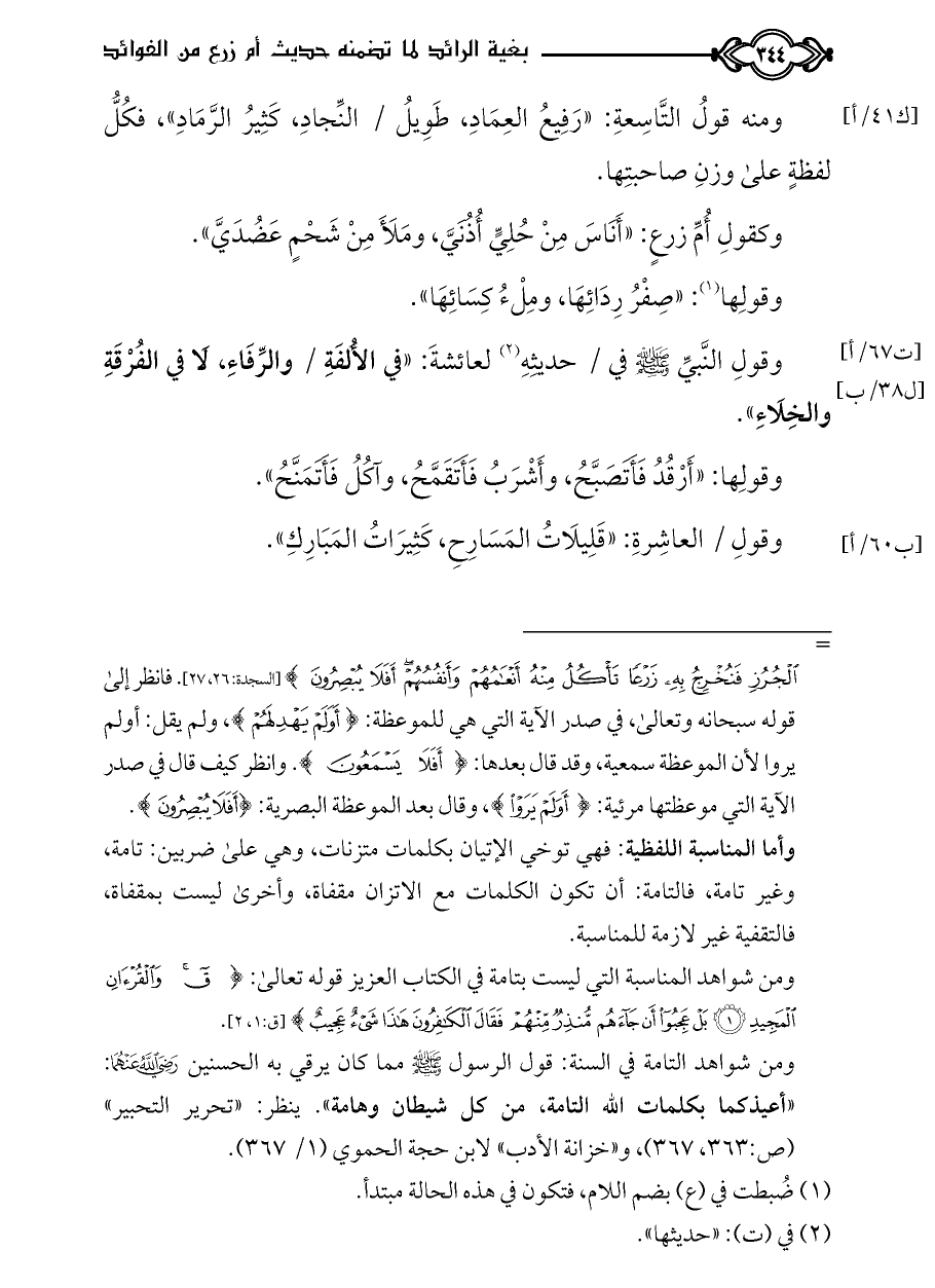 كتاب بغية الرائد لما تضمنه حديث أم زرع من الفوائد ت الدسوقي