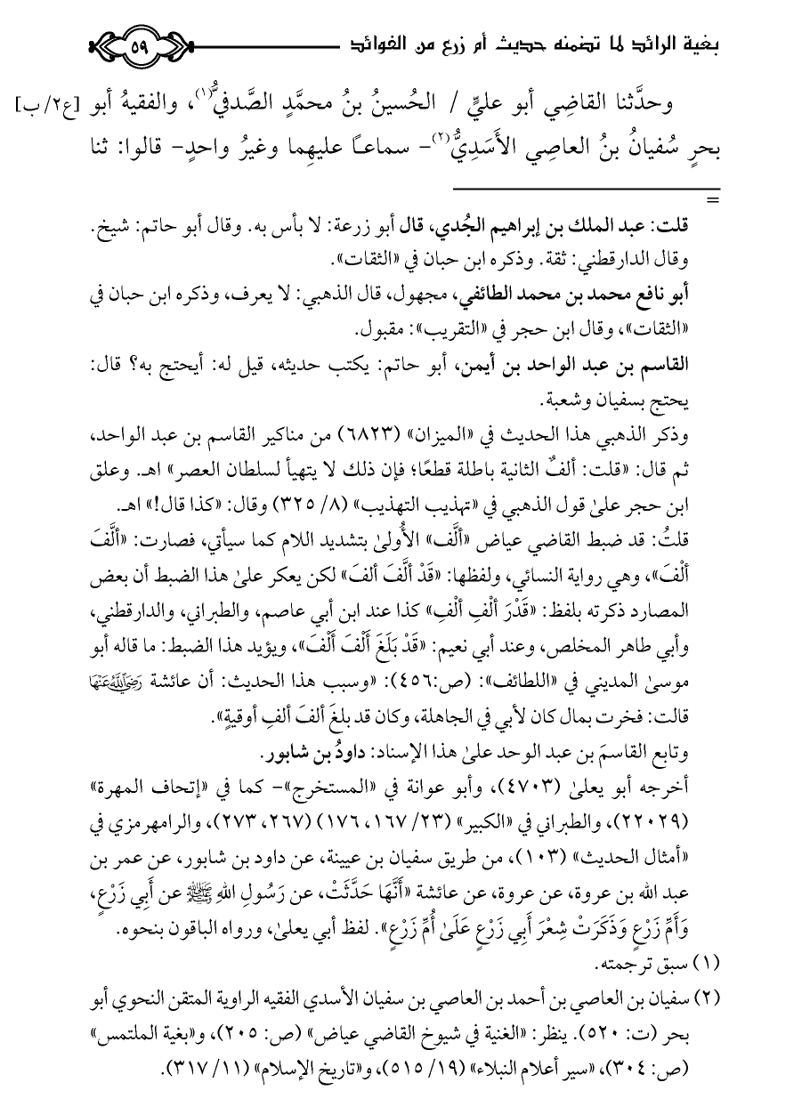 كتاب بغية الرائد لما تضمنه حديث أم زرع من الفوائد ت الدسوقي