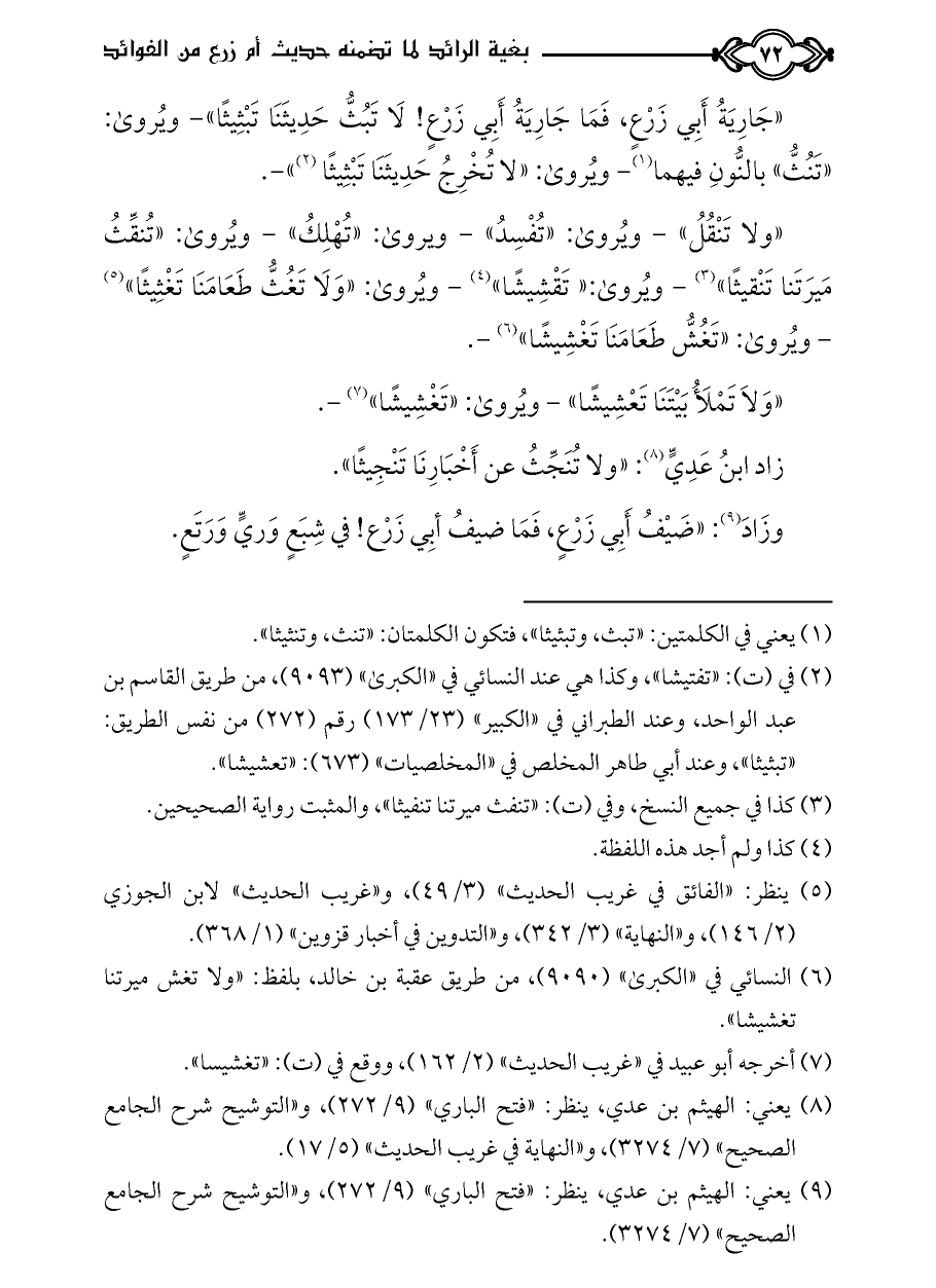 كتاب بغية الرائد لما تضمنه حديث أم زرع من الفوائد ت الدسوقي