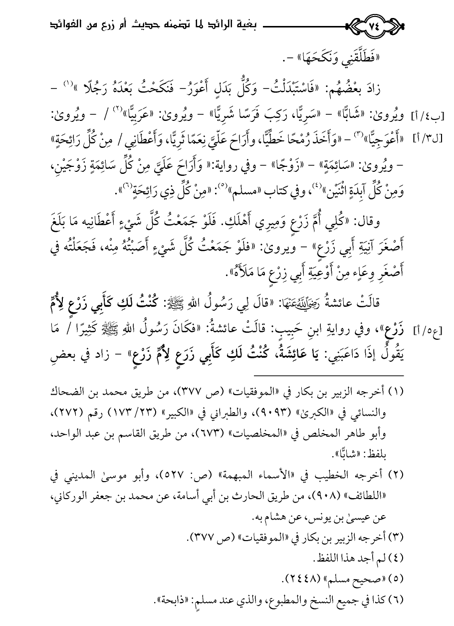كتاب بغية الرائد لما تضمنه حديث أم زرع من الفوائد ت الدسوقي