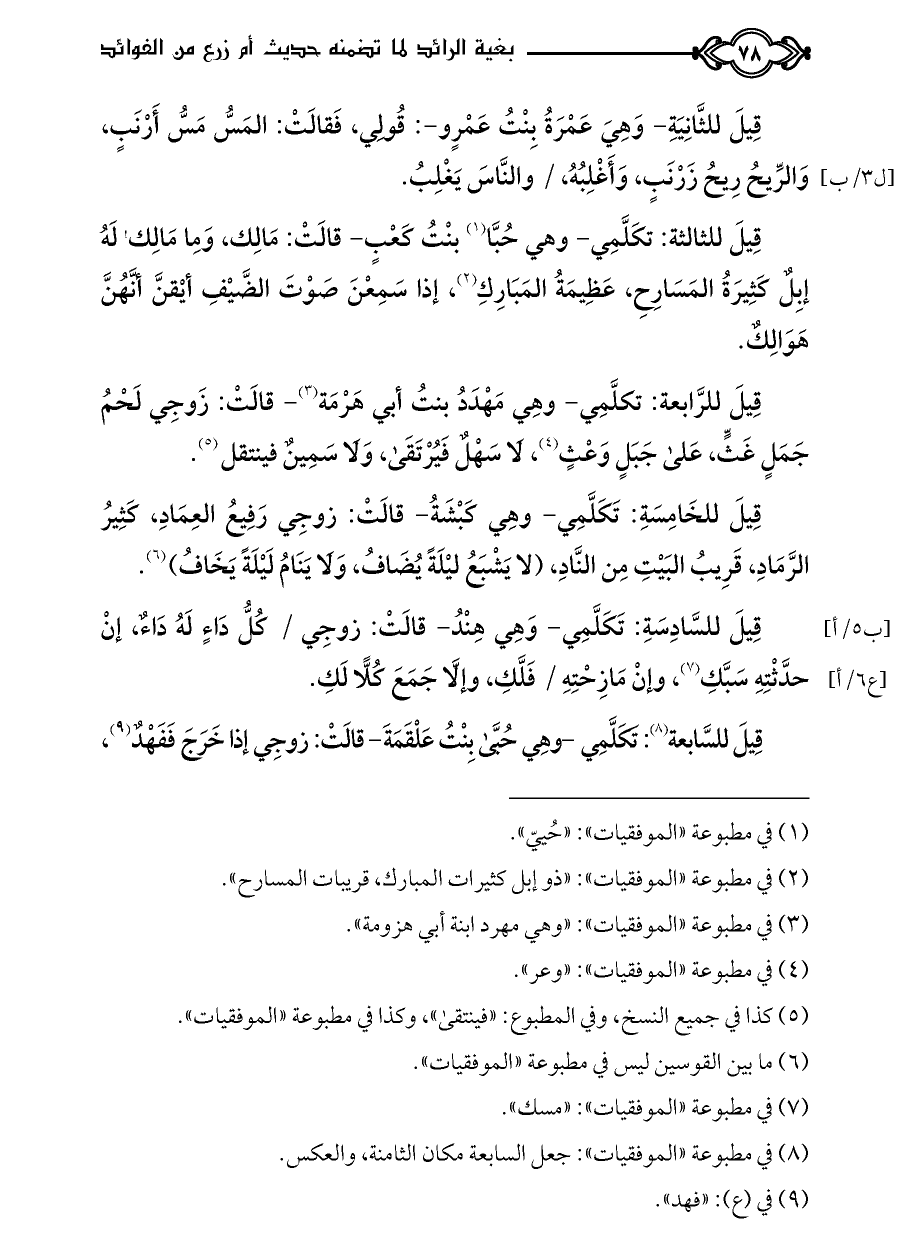 كتاب بغية الرائد لما تضمنه حديث أم زرع من الفوائد ت الدسوقي