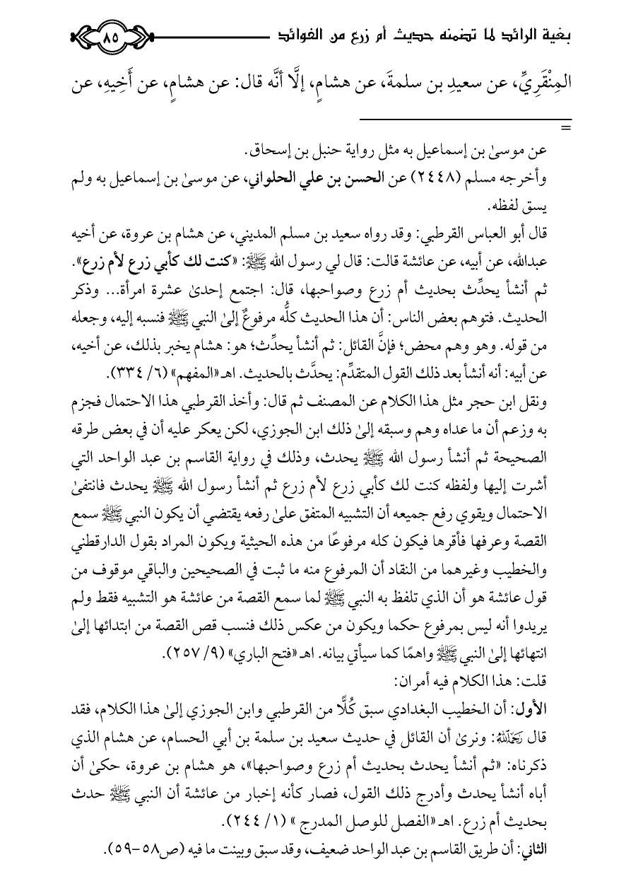 كتاب بغية الرائد لما تضمنه حديث أم زرع من الفوائد ت الدسوقي