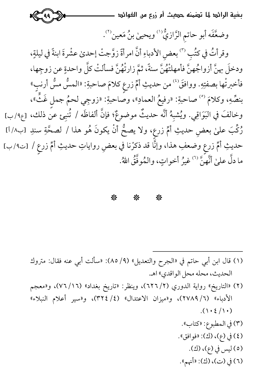 كتاب بغية الرائد لما تضمنه حديث أم زرع من الفوائد ت الدسوقي