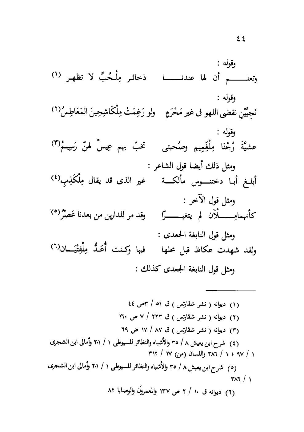 5 شرح ابن يعيش 8/ 35 والأشباه والنظائر للسيوطي 1/ 201 وأمالي ابن الشجري 1/ 386.