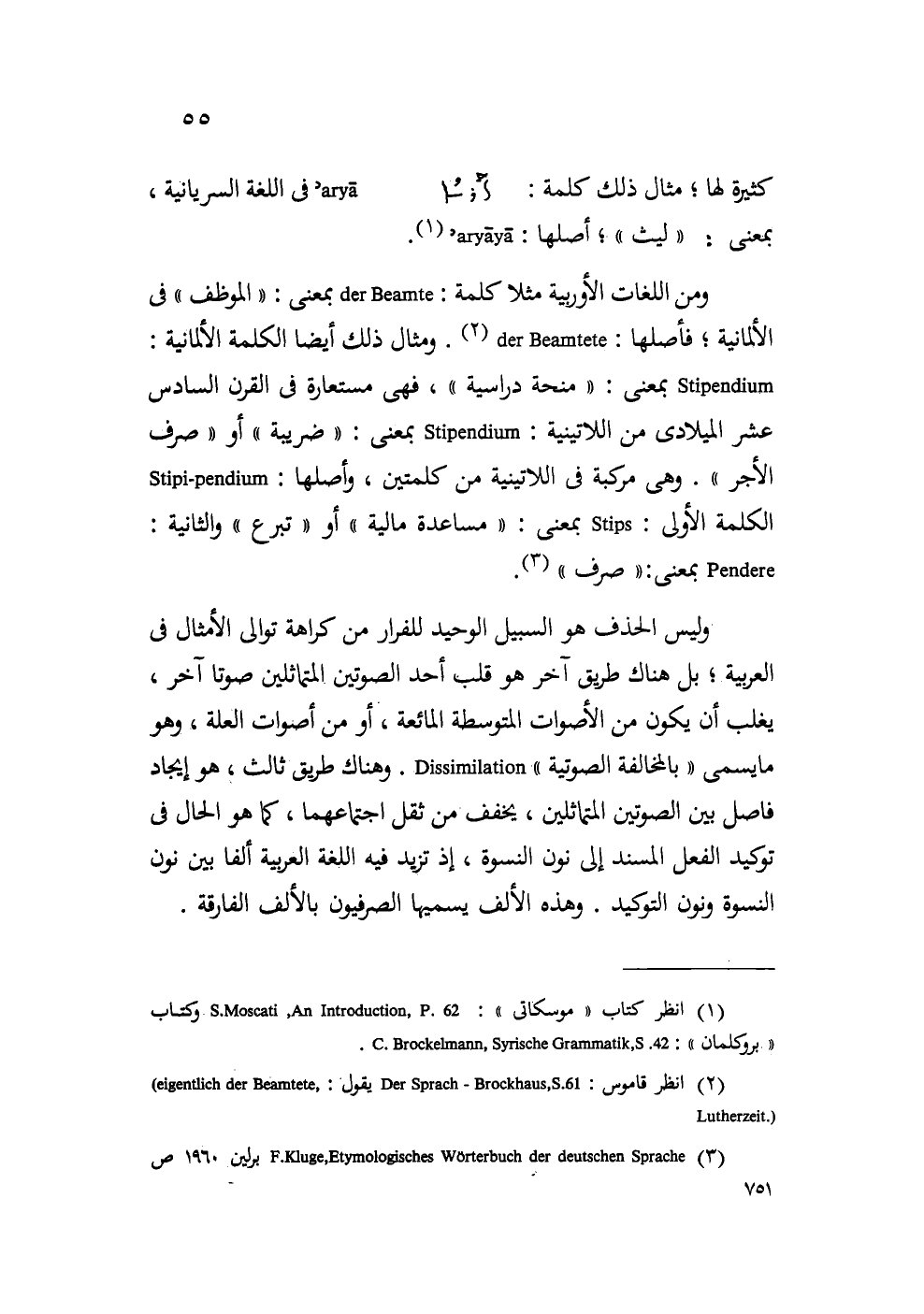 1 انظر كتاب "موسكاتي": S. Moscati. An introduction, p, 62 وكتاب "بروكلمان": C. Brock elmann, Syrische Grammtik, s 42>