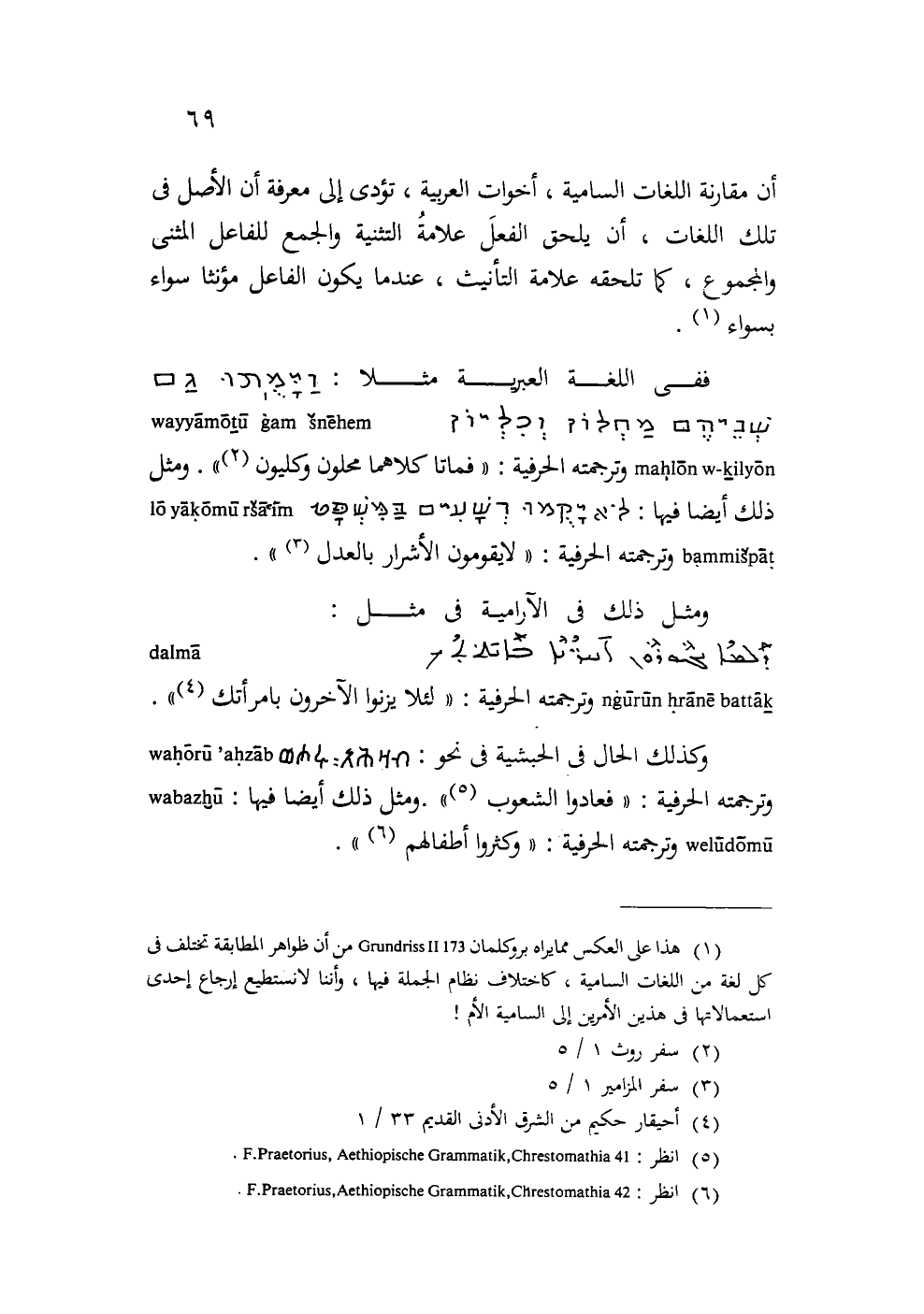 5 انظر: F. Praetorius aethiopische Grammatik m chrestomathia 41