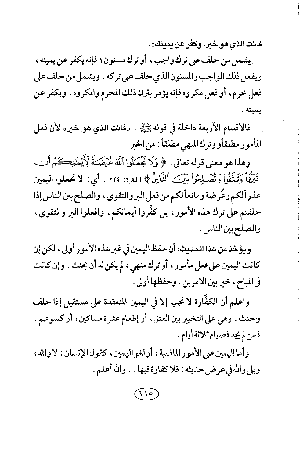 وهذا هو معنى قوله تعالى: {وَلَا تَجْعَلُوا اللَّهَ عُرْضَةً لِأَيْمَانِكُمْ أَنْ تَبَرُّوا وَتَتَّقُوا وَتُصْلِحُوا بَيْنَ النَّاسِ} [البقرة: 224]