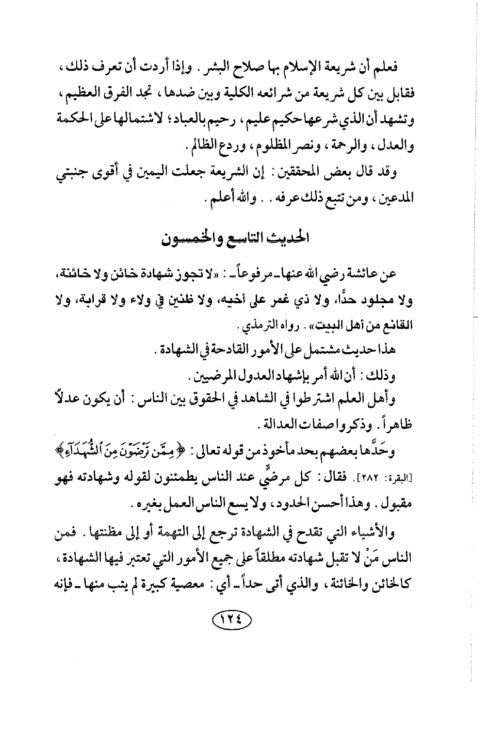 الحديث التاسع والخمسون عَنْ عَائِشَةَ رَضِيَ اللَّهُ عَنْهَا - مَرْفُوعًا - «لَا تَجُوزُ شَهَادَةُ خَائِنٍ وَلَا خَائِنَةٍ، وَلَا مَجْلُودٍ حَدًّا، وَلَا ذِي غِمْرٍ عَلَى أَخِيهِ، وَلَا ظَنِينٍ فِي وَلَاءٍ وَلَا قَرَابَةٍ، وَلَا الْقَانِعِ من أهل البيت» . رواه الترمذي.