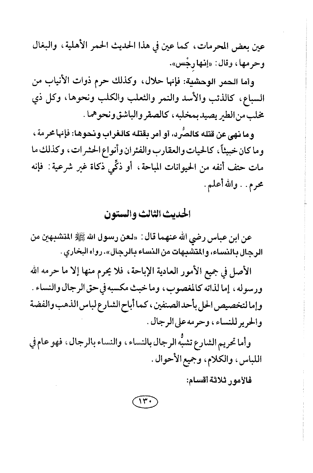 الحديث الثالث والستون عَنِ ابْنِ عَبَّاسٍ رَضِيَ اللَّهُ عَنْهُمَا قَالَ: «لعن رسول الله صلى الله عليه وسلم الْمُتَشَبِّهِينَ مِنَ الرِّجَالِ بِالنِّسَاءِ، وَالْمُتَشَبِّهَاتِ مِنَ النِّسَاءِ بالرجال» . رواه البخاري.