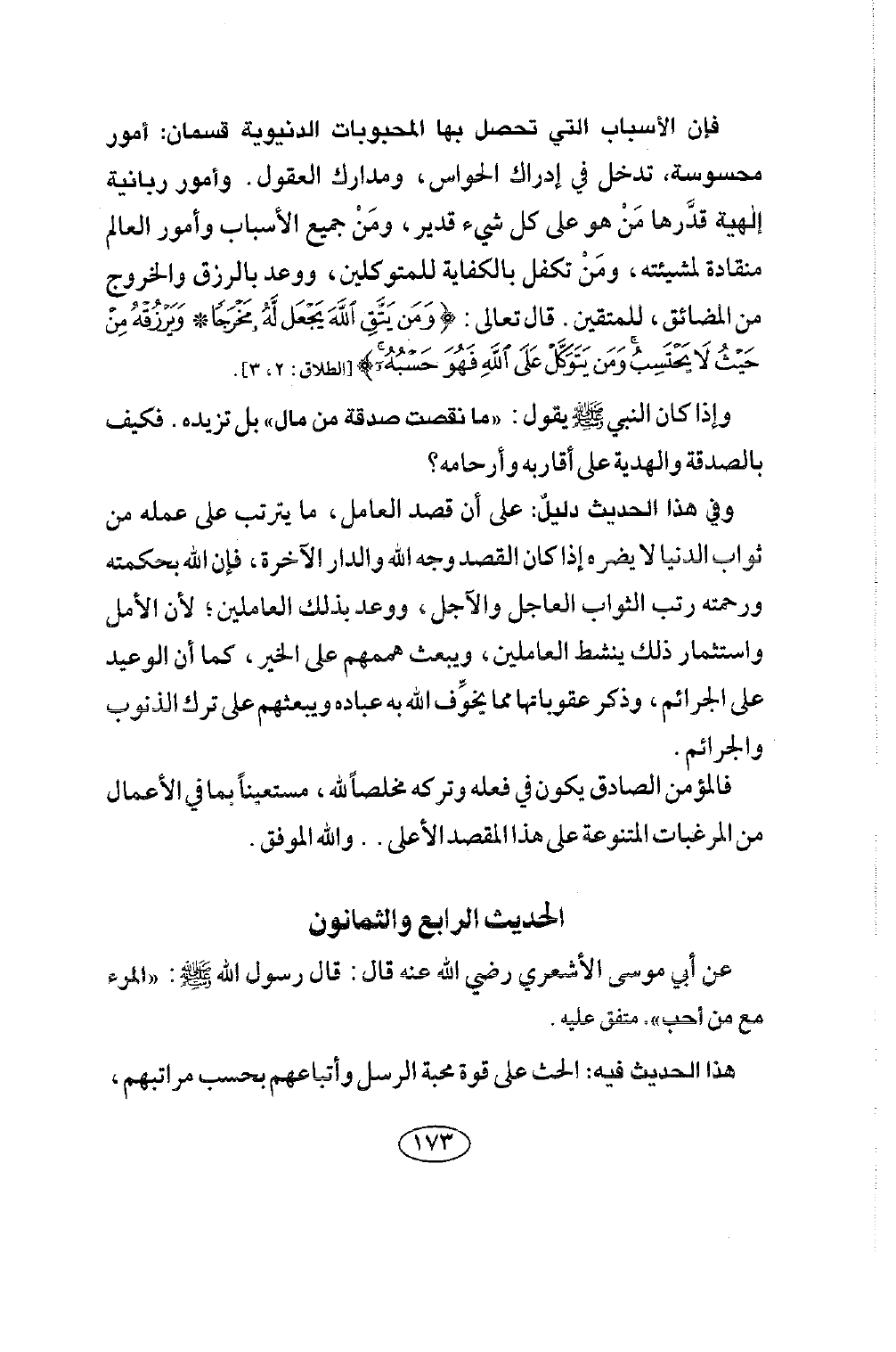 الحديث الرابع والثمانون عَنْ أَبِي مُوسَى الْأَشْعَرِيِّ رضي الله عنه قَالَ: قَالَ رَسُولُ اللَّهِ صلى الله عليه وسلم: «الْمَرْءُ مَعَ مَنْ أَحَبَّ» . مُتَّفَقٌ عَلَيْهِ.