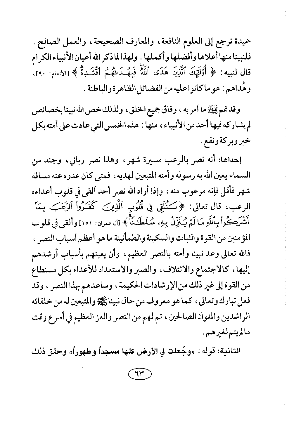 وقد تم ما أمر به، وفاق جميع الخلق، ولذلك خص الله نبينا بخصائص لم يشاركه فيها أحد من الأنبياء، منها: هذه الخمس التي عادت على أمته بكل خير وبركة ونفع.