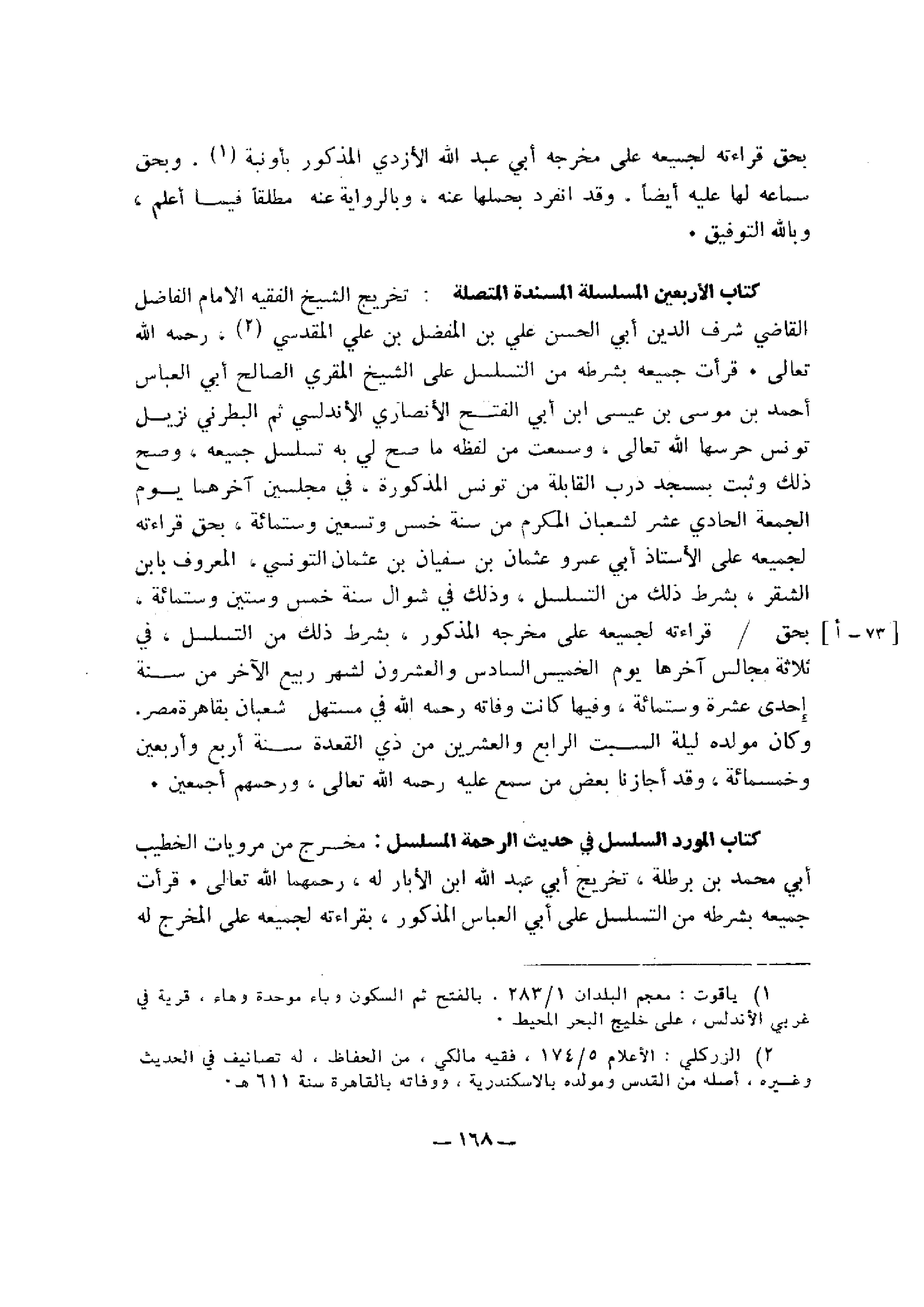 كتاب الأربعين المسلسلة المسندة المتصلة: تخريج الشيخ الفقيه الإمام الفاضل القاضي شرف الدين أبي الحسن علي بن المفضل بن علي المقدسي، رحمه الله تعالى.