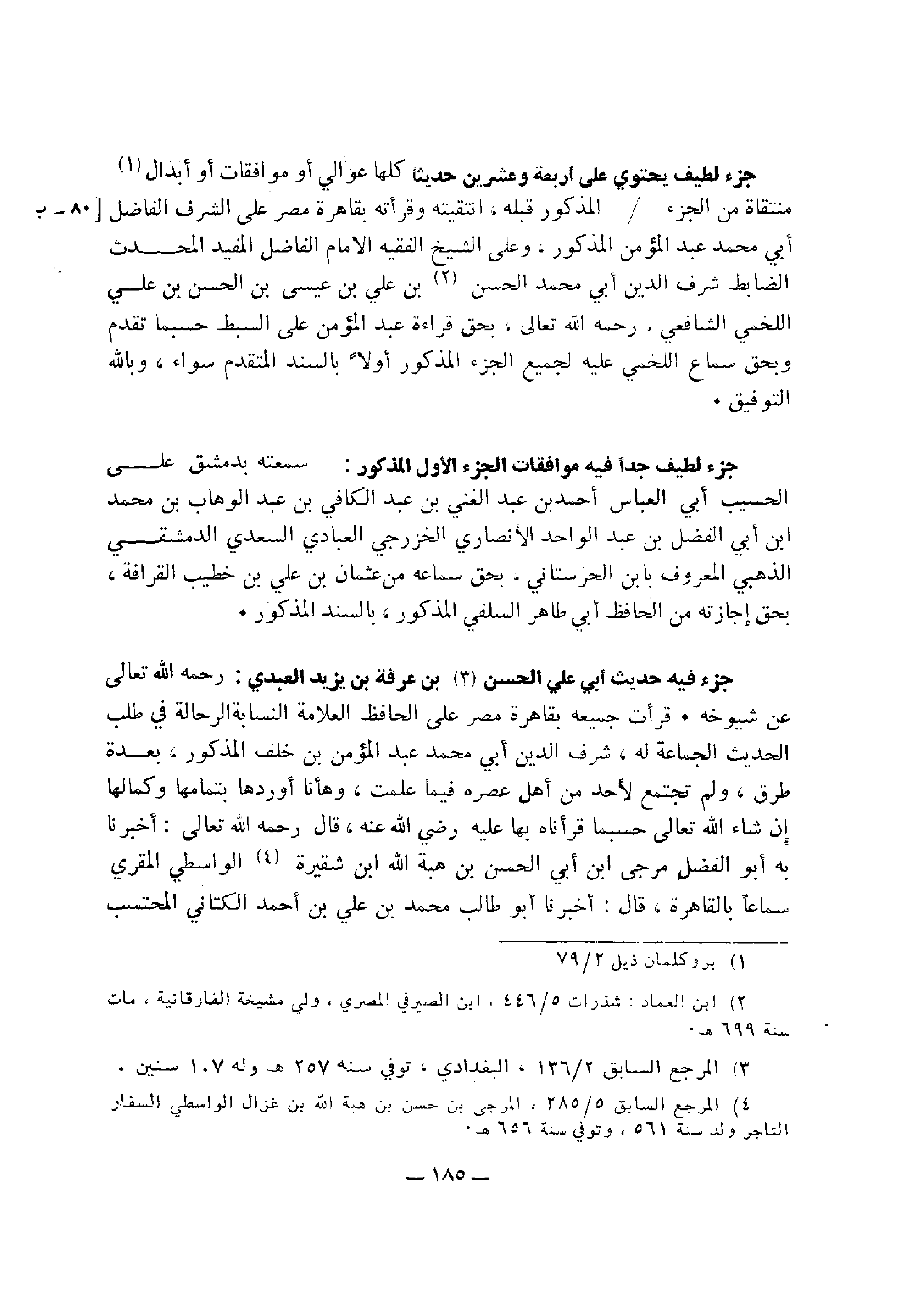 منتقاة من الجزء المذكور قبله، انتقيته وقرأته بقاهرة من علي الشرف الفاصل أبي محمد عبد المؤمن المذكور، وعلى الشيخ القيه الإمام الفاضل المفيد المحدث الضابط شرف الدين أبي محمد الحسن بن علي بن علي بن عيسي بن الحسن بن علي اللخمي الشافعي، رحمه الله تعالى، بحق قراءة عبد المؤمن علي السبط حسبما تقدم وبحق سماع اللخمي عليه لجميه الجزء المذكور أولًا بالسند المتقدم سواء، وبالله التوفيق.