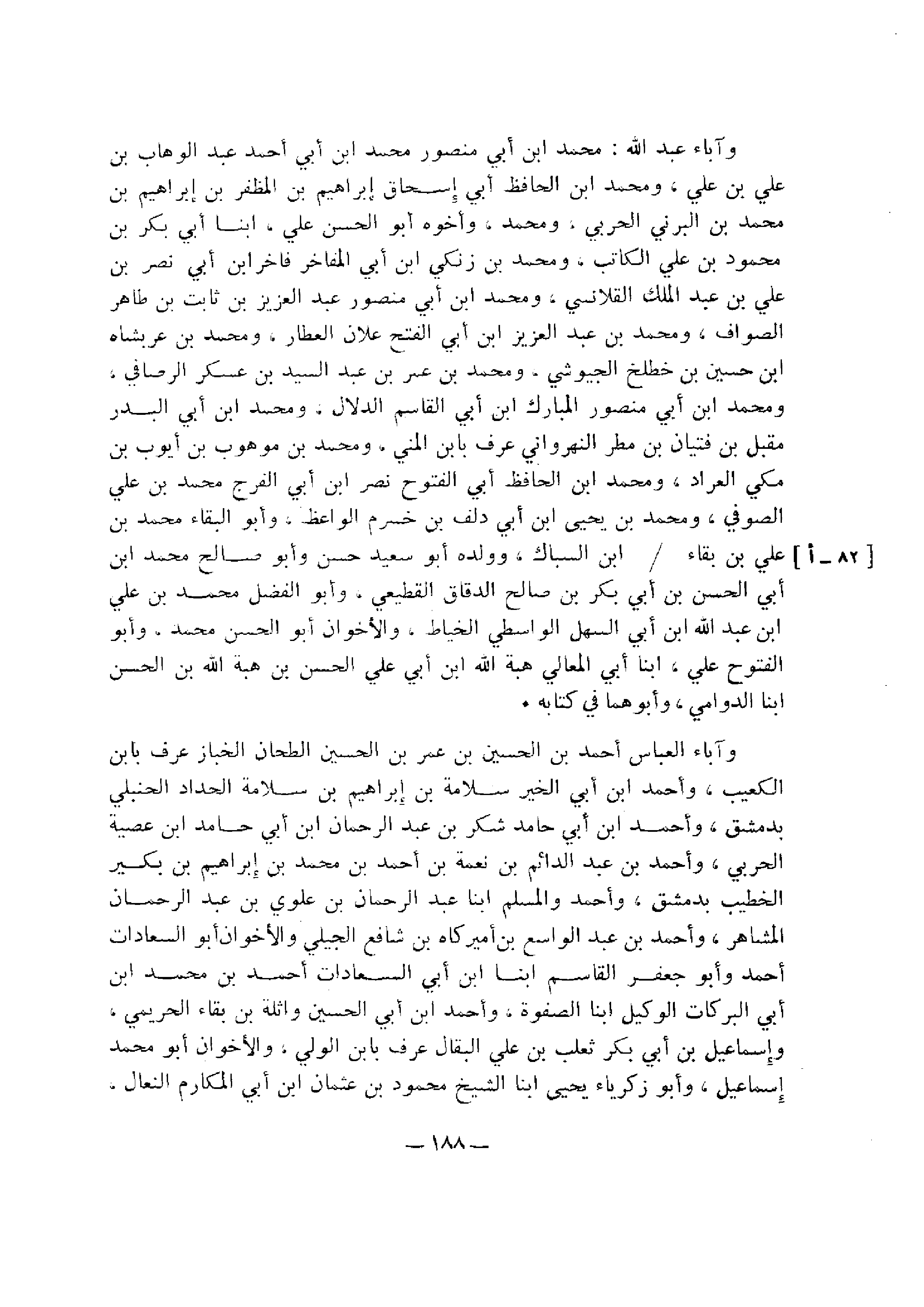 وآباء العباس أحمد بن الحسين بن عمر بن الحسن الطحان الخباز عرف بابن الكعيب، وأحمد ابن أبي الخير سلامة بن إبراهيم بن سلامة الحداد الحنبلي بدمشق، وأحمد بن أبي حامد شكر بن عبد الرحمن بن أبي حامد بن عطية الحربي، وأحمد بن عبد الدائم بن نعمة بن أحمد بن محمد بن إبراهيم بن بكير الخطيب بدمشق، وأحمد والمسلم ابنا عبد الرحمن بن علوي بن عبد الرحمن المشاهر، وأحمد بن عبد الواسع بن أميركاه بن شافع الجيلي والأخوان أبو السعادات أحمد وأبو جعفر القاسم ابنا ابن أبي السعادات أحمد بن محمد بن أبي البركات الوكيل ابنا الصفوة، وأحمد بن أبي الحسين واثلة من بقاء الحريمي، وإسماعيل بن أبي بكر ثعلب بن علي البقال عرف بابن الولي، والأخوان أبو محمد إسماعيل، وأبو زكرياء يحيى ابنا الشيخ محمود بن عثمان ابن أبي المكارم النعال.