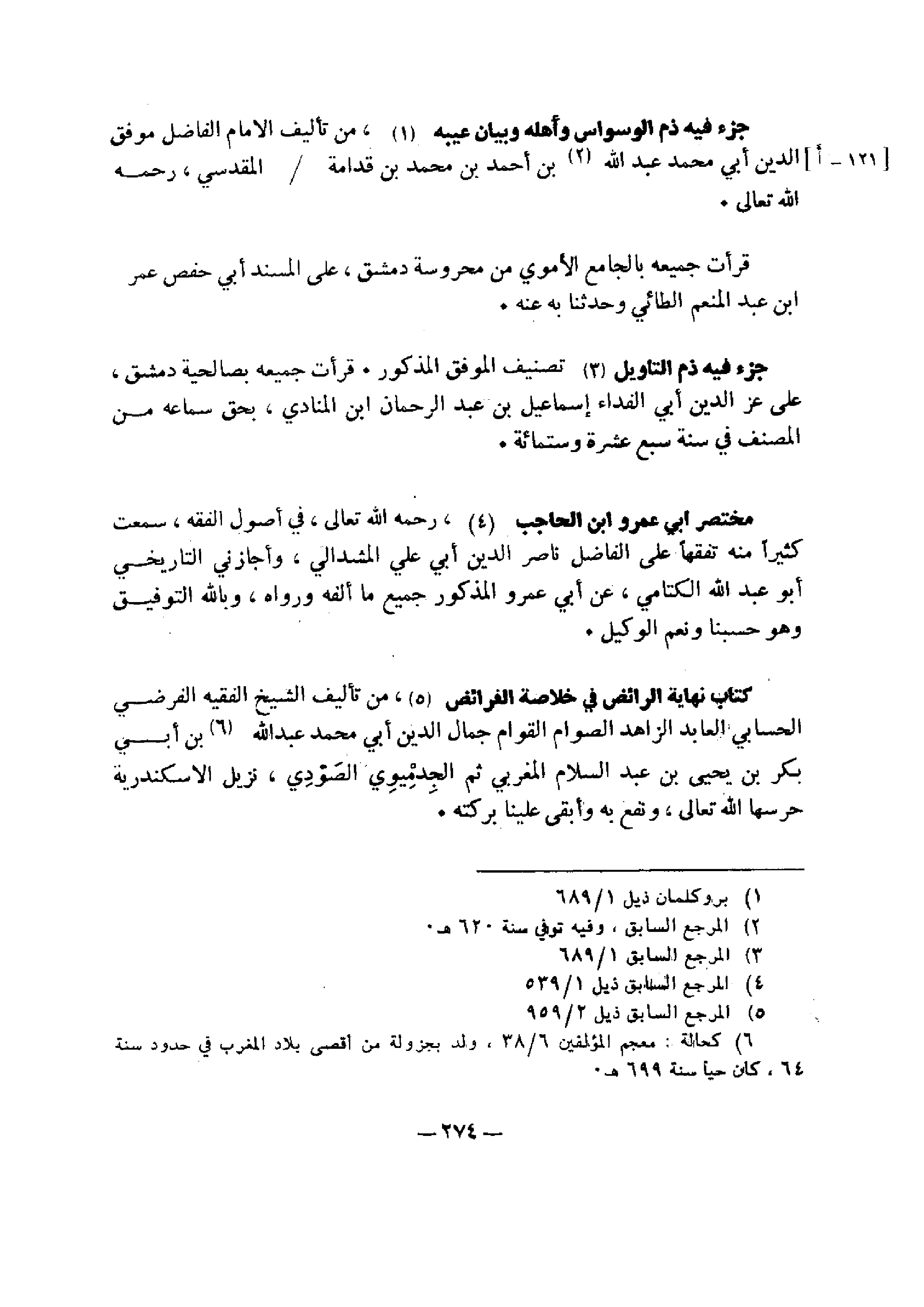 جزء فيه ذم الوسواس، وأهله وبيان عيبه، من تأليف الإمام الفاضل موفق الدين أبي محمد عبد الله بن أحمد بن محمد بن قدامة المقدسي، رحمه الله تعالى.