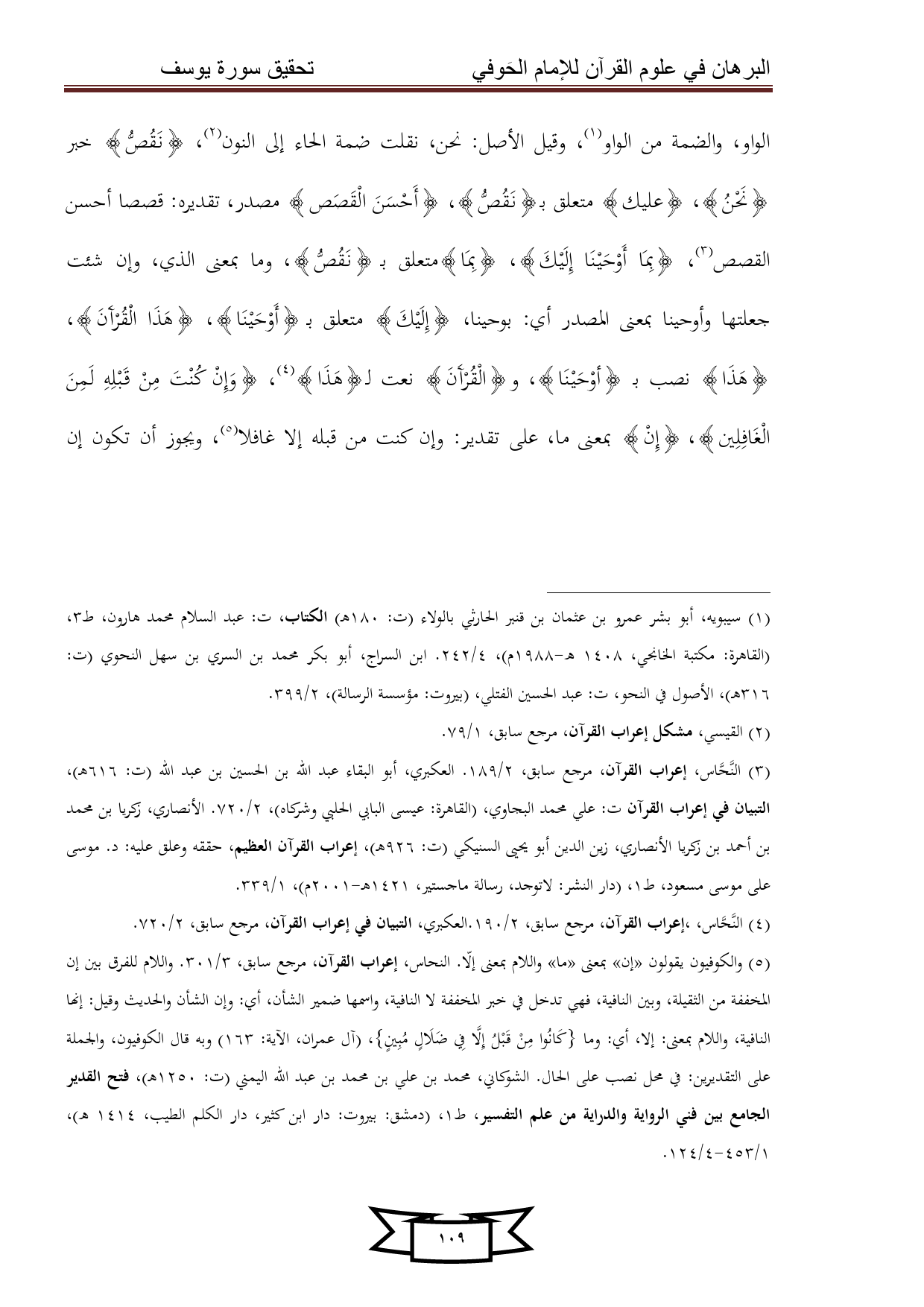 كتاب البرهان في علوم القرآن للإمام الحوفي - سورة يوسف
