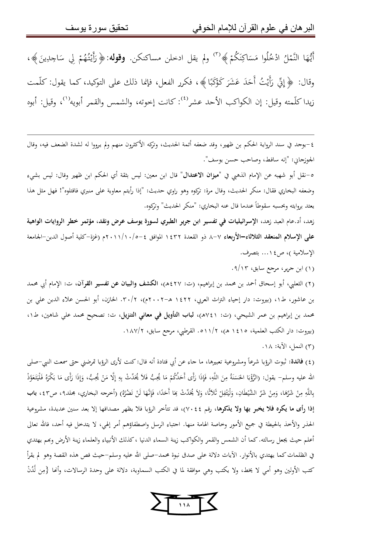 كتاب البرهان في علوم القرآن للإمام الحوفي - سورة يوسف